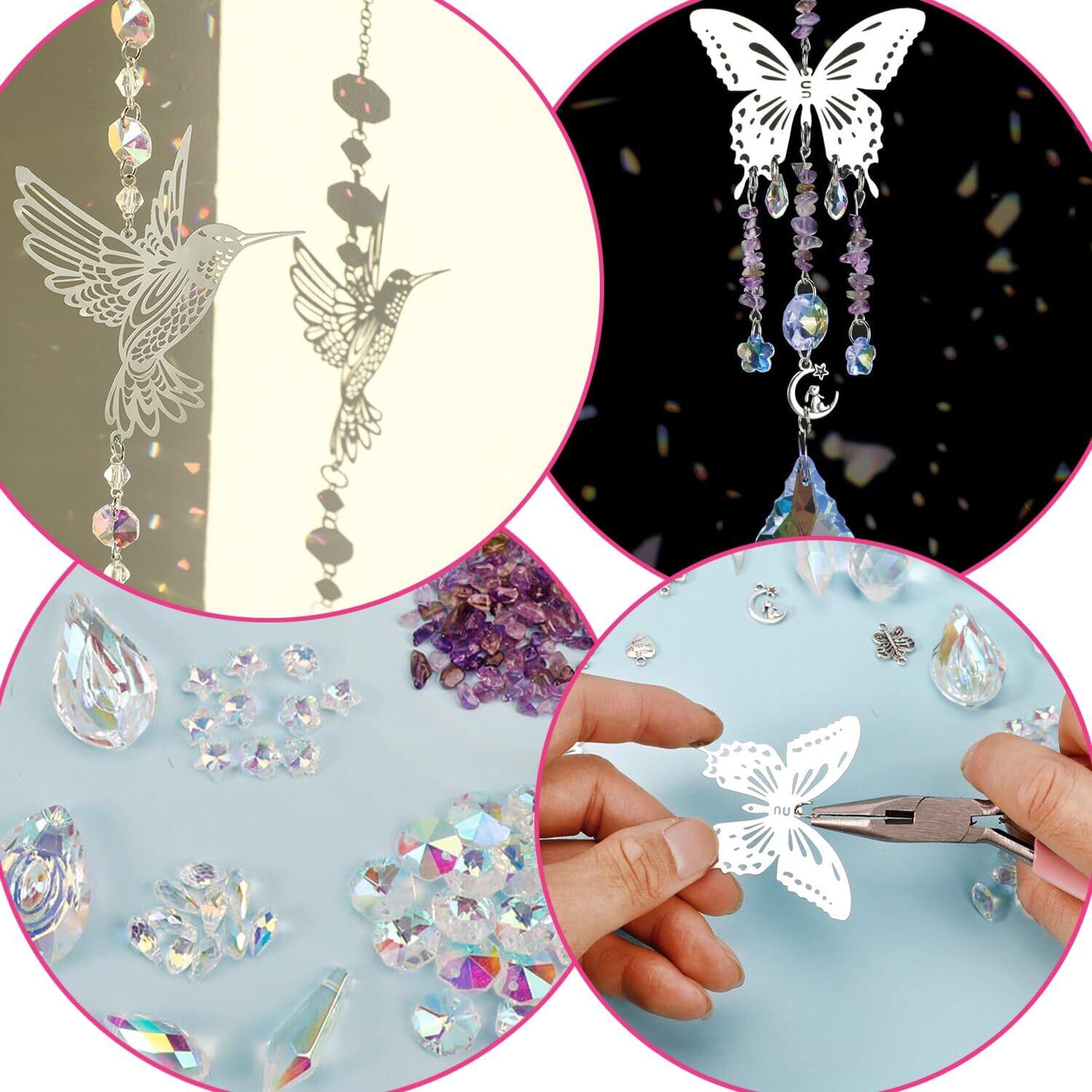 【特価商品】400個クリスタルサンキャッチャー キット 水晶ペンダント装飾窓 玄関 ベランダ 庭園装飾水晶 大人用DIYサンキャッチャー作りセットキットビーズ材料手作りガーデンパーティーの装飾品ジュエリー用品 | allstore3