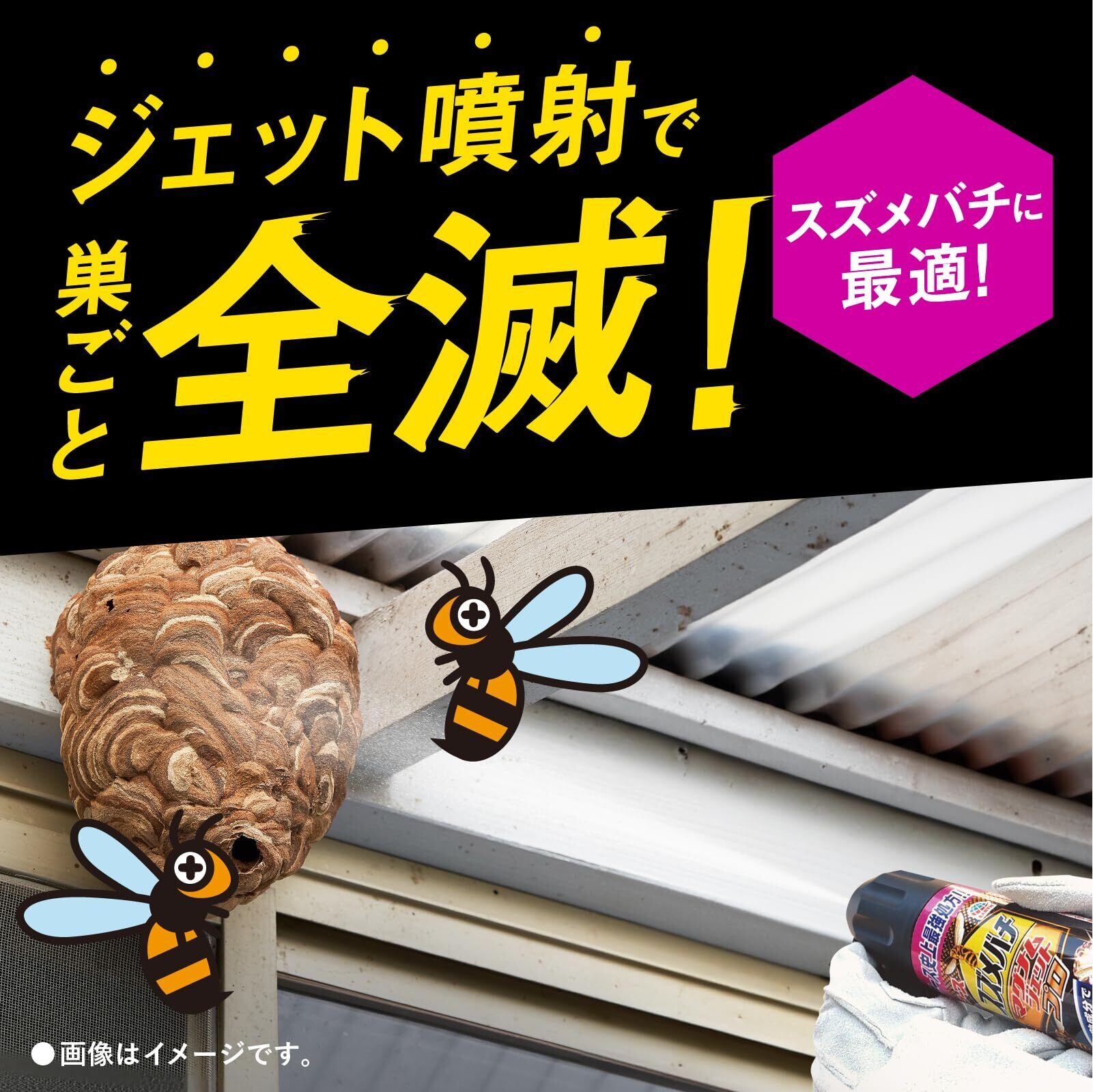 【適用害虫】スズメバチ(オオスズメバチを除く)、ツマアカスズメバチ、アシナガバチ、クマバチ、アブ、ブユ、クモ、ケムシ、ムカデ、カメムシ
