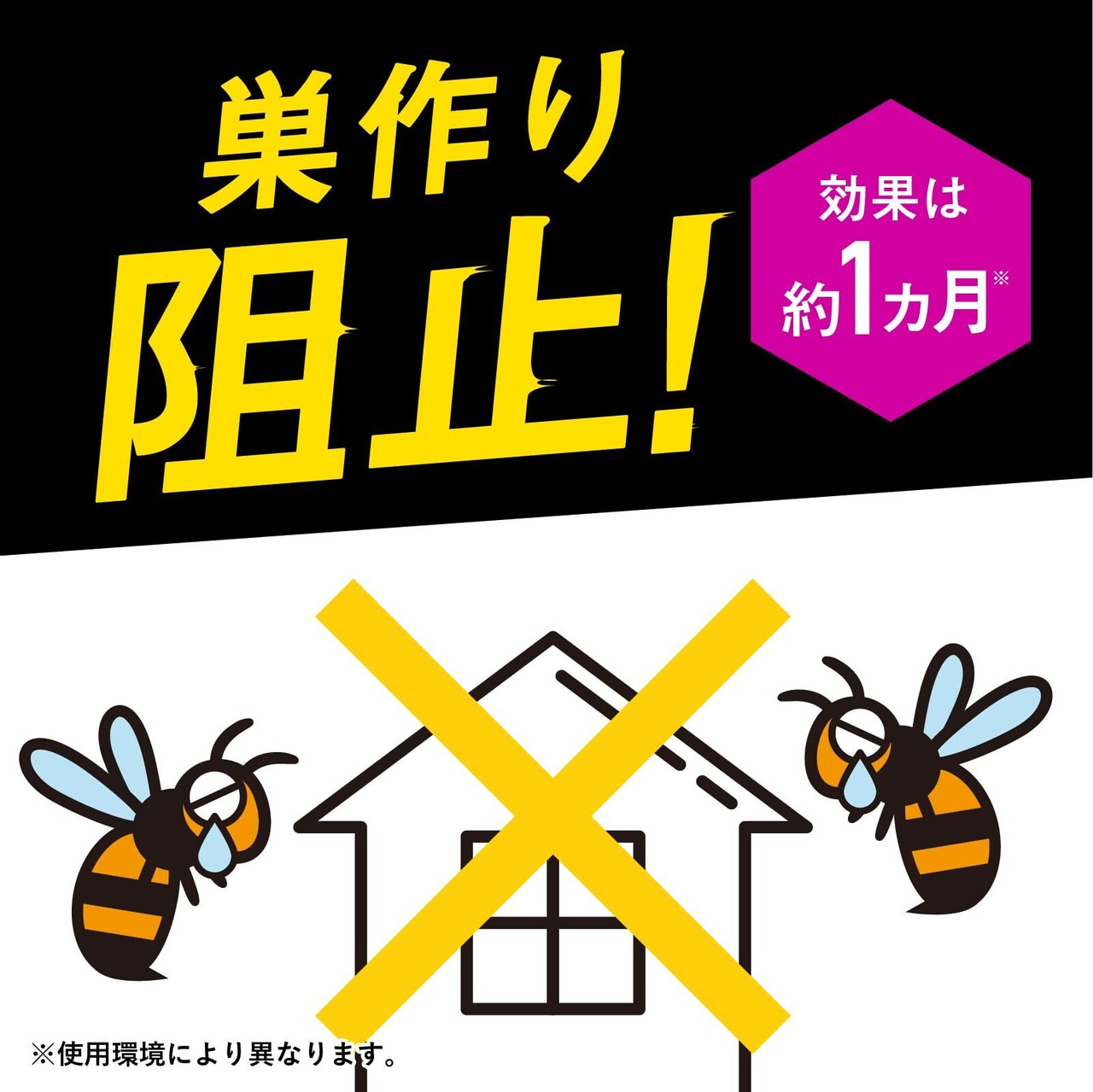 持続成分配合で1ヵ月ハチの巣を作らせない。(使用環境により異なります)