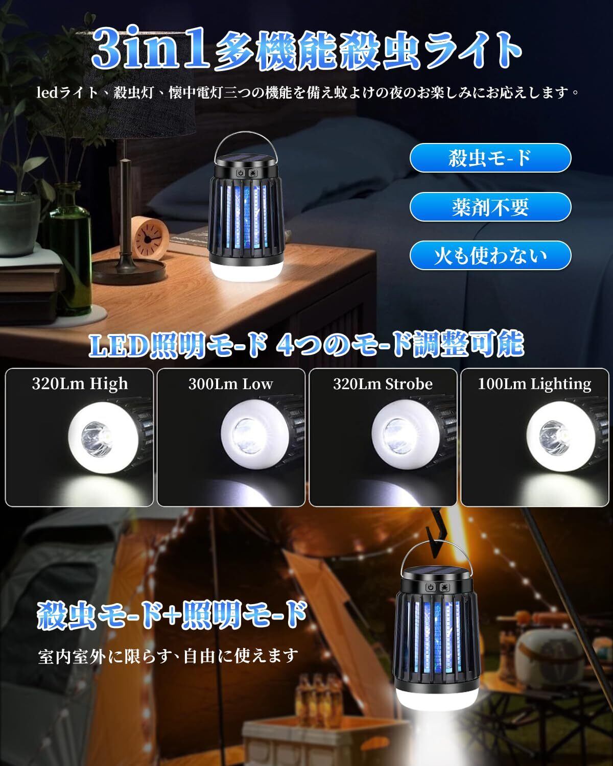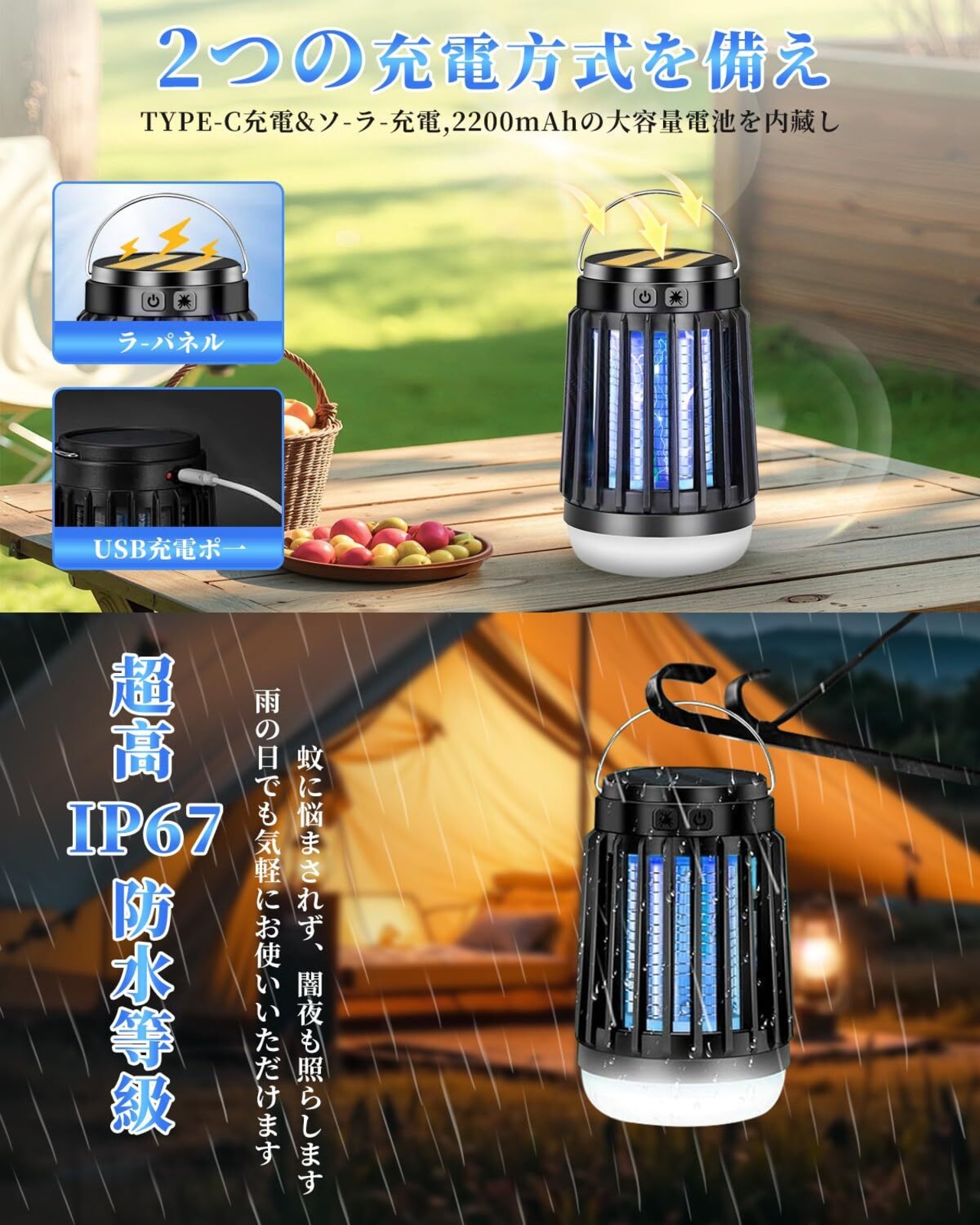 【静音設計・省エネ設計・IP67防水】稼働音は20db以下で、人間の耳では聞き取れないほどの音です。無音と言ってもいいです。夜には静かに眠れます。2200mAhバッテリーが内蔵され、高品質リチウムイオン材料で製造され、長寿命かつ安定した性能を実現しています。 他の蚊取り器と違い,電源ボタンは防水キャンプ設計され、超高水準のIPX6防水仕様の電気蚊取り器です、屋内屋外でもご安心に使用いただけます。