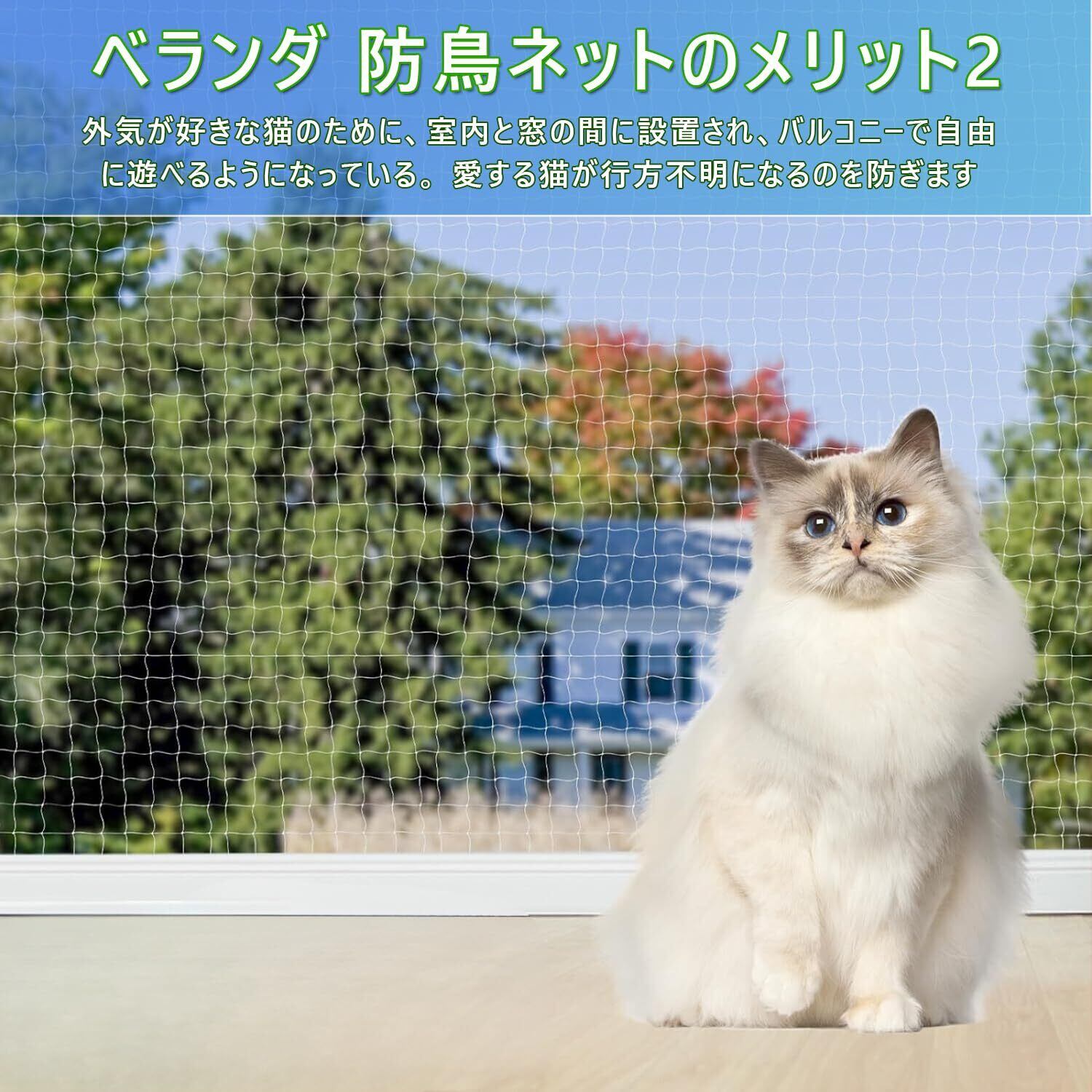 【猫や脱走防止にも対応】防鳥ネットは、猫の脱走防止にも最適です。ベランダや庭に設置することで、猫ちゃんの安全を守ることができます。家庭の大切な空間を、安心して楽しんでいただくための心強い味方です。