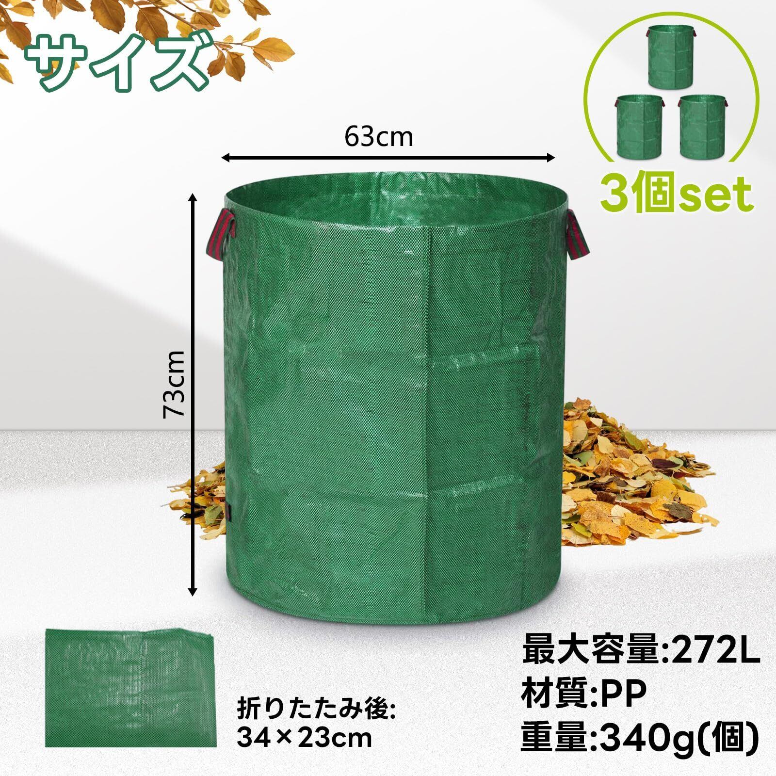 【人気商品】ガーデンバッグ 大容量272L 3個入り 防災 収納袋 ガーデンバケツ フレコンバッグ 集草バッグ 大型庭用袋 自立式 折り畳み 再利用可能な 環境に優 防水 集草バッグ お庭の清掃 ごみ落ち葉の処理用 防災グッズ 園芸用 | allstore3