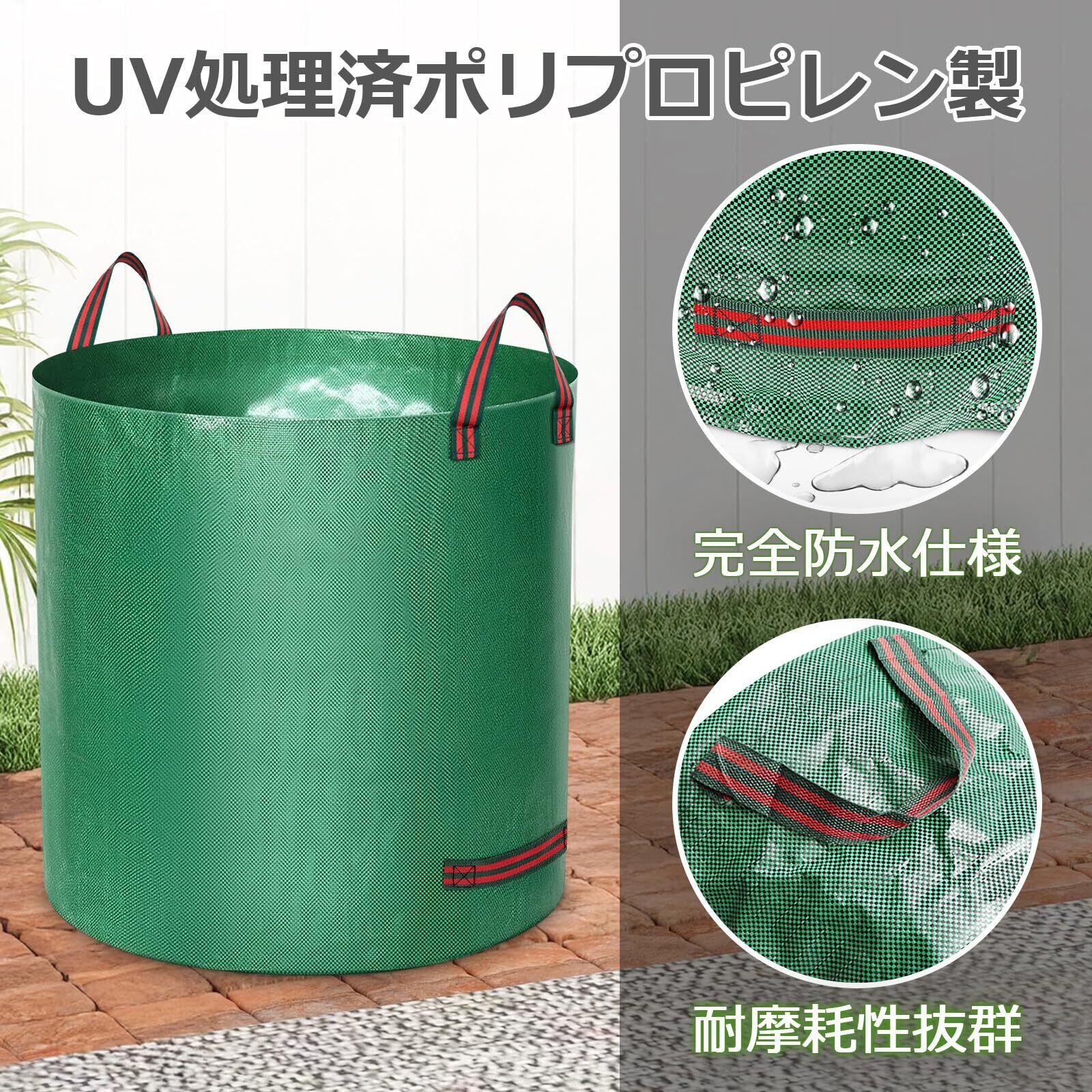 【耐久性が抜群】UV処理されたポリプロピレン製のターポリンから作られたガーデン廃棄バッグです。再利用可能な分解性材料で、耐久性、無公害、環境に優しい高品質な室内室外用収草袋です。プラスチック製ゴミバッグと比べて、この大型庭用袋は繰り返して再利用可能です。防水ターポリン生地。泥や汚れは水でサッと流せてお手入れ簡単。