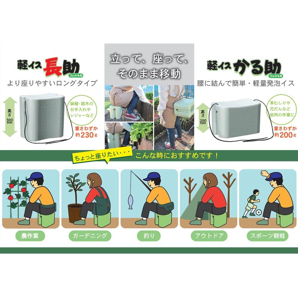 軽イスかる助は農作業や釣りといった屋外での活動に便利な携帯用の腰掛けです。