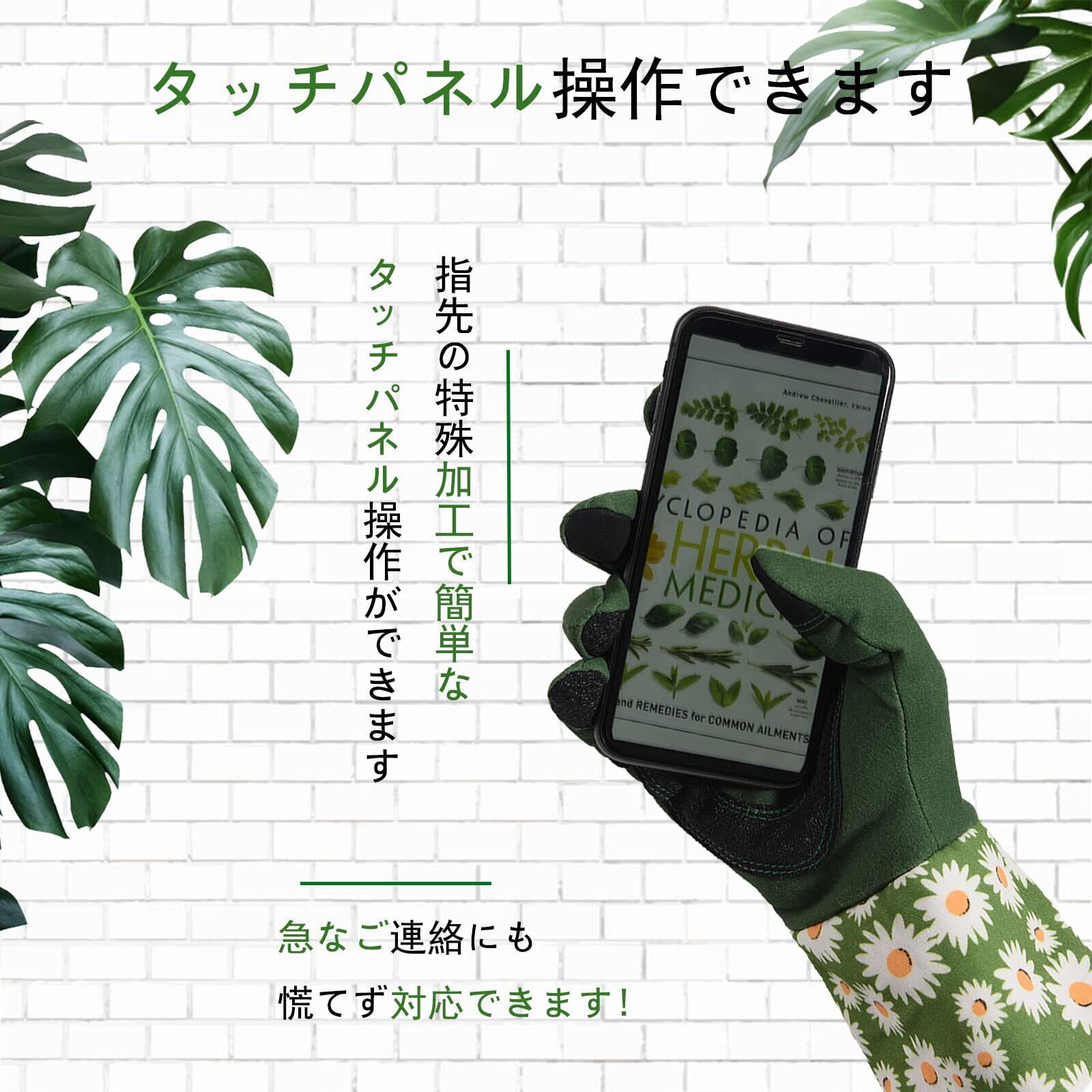【使い勝手の良いタッチスクリーン対応】手袋をしたままでもスマートフォンやタブレットが操作できるタッチスクリーン機能が搭載されています!作業中に写真を撮ったり、情報を確認するのも楽々です。便利な機能で、ガーデニングを一層楽しみましょう。