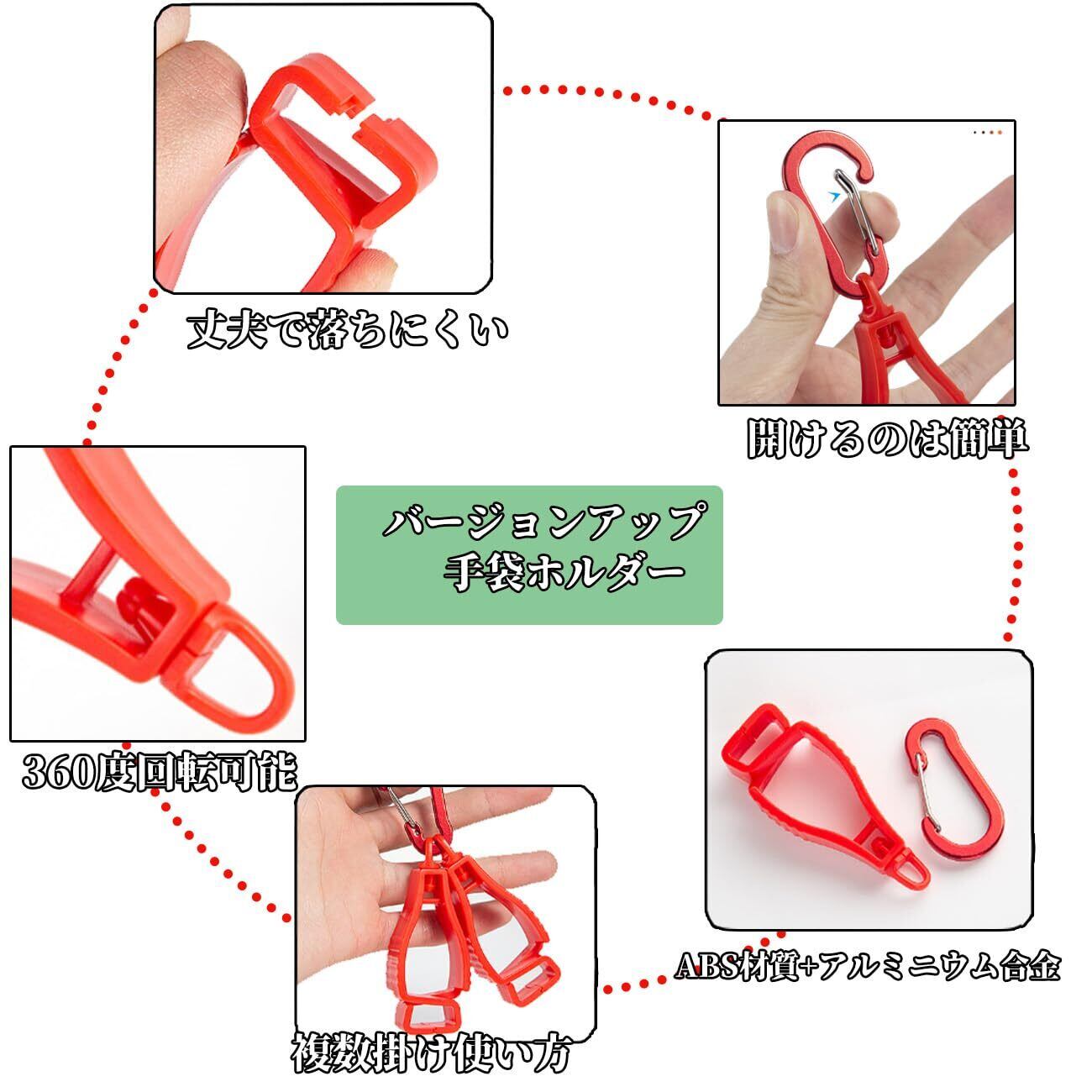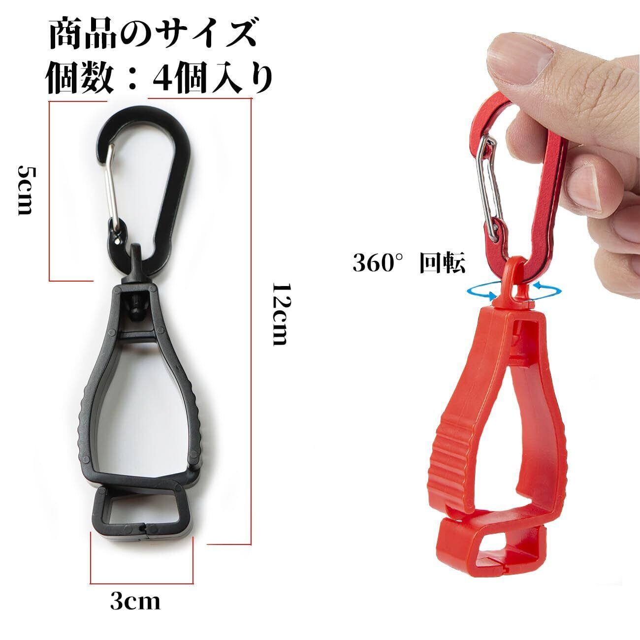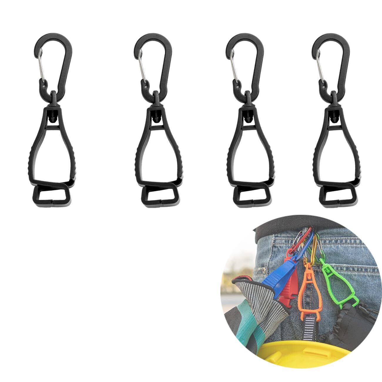 グローブホルダー 手袋ホルダー 【改良型カラビナ360°回転】 カラビナクリップ クリップホルダー 挟み グローブクリップ 耐久性 紛失防止 グローブ収納に 高強度 4個セット-Black