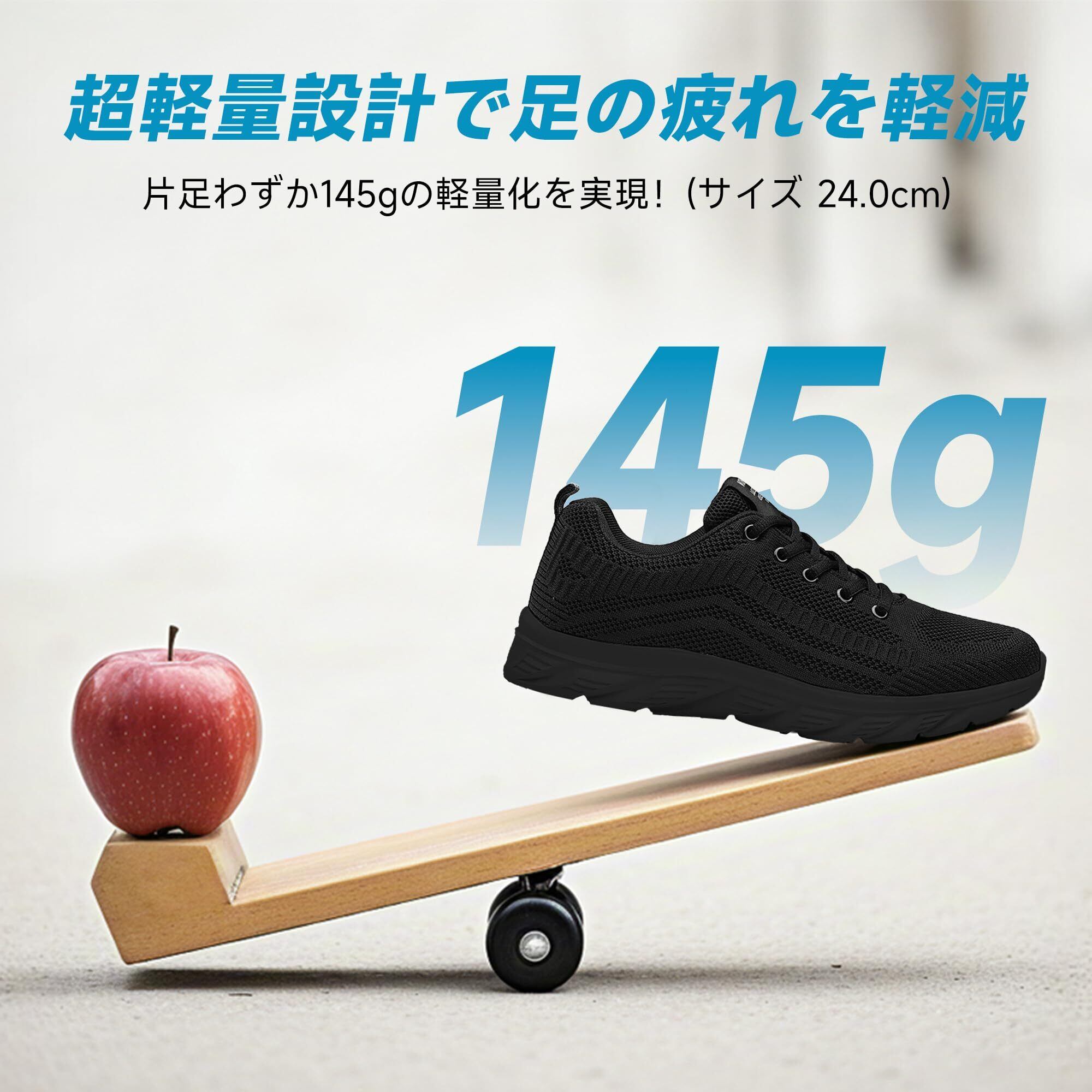 ✈ 超軽量設計で足の疲れを軽減: 片足わずか140-155gの軽量化を実現!長時間のウォーキングやランニングでも足に負担をかけず、軽やかな動きをサポートします。