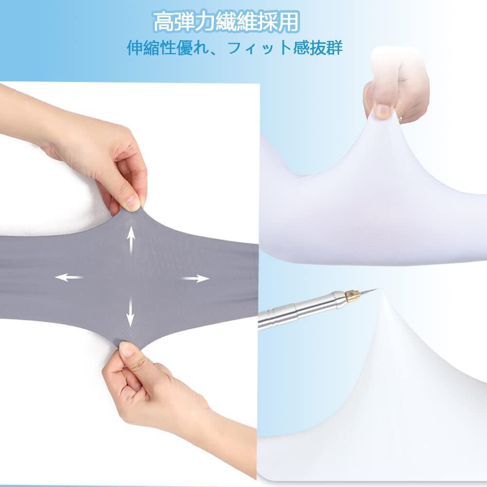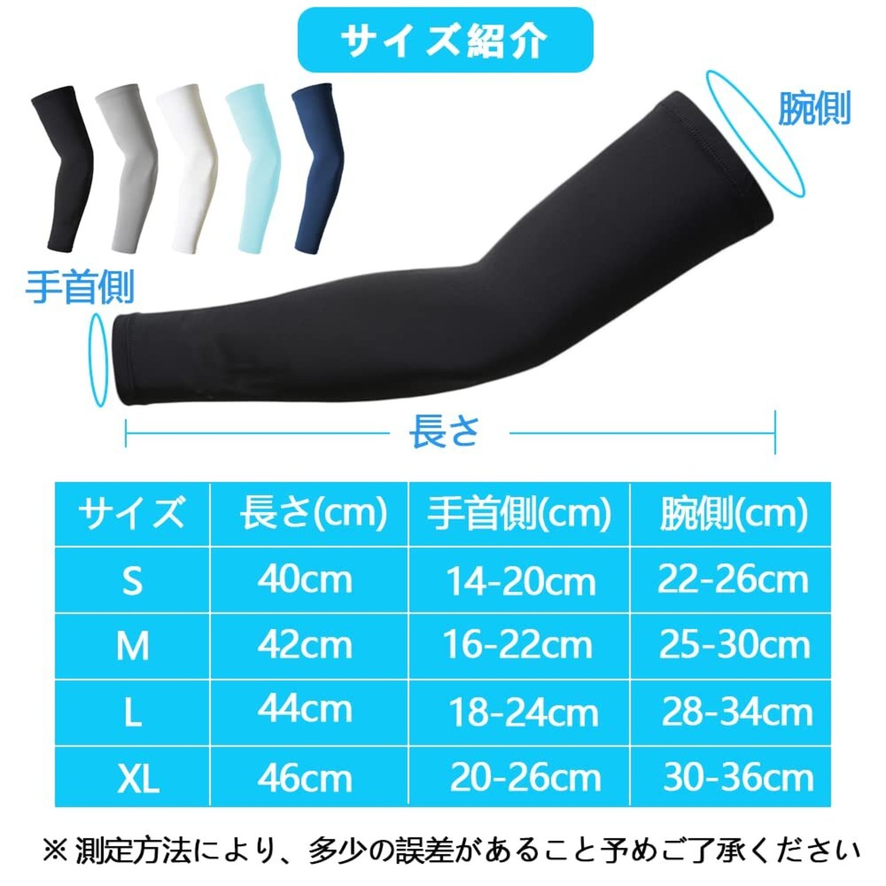 【素材構成】 92%ポリエステル+8%スパンデックスの高弾力繊維、接触冷感、UVカット率99%、伸縮性と通気性優れ、シリコン滑り止め付き;【適用対象】メンズ、レディース、男女兼用 、左右2枚セット;【サイズ】S、M、L、XL;【カラー】ブラック、ホワイト、グレー、ネイビー、ブルー。