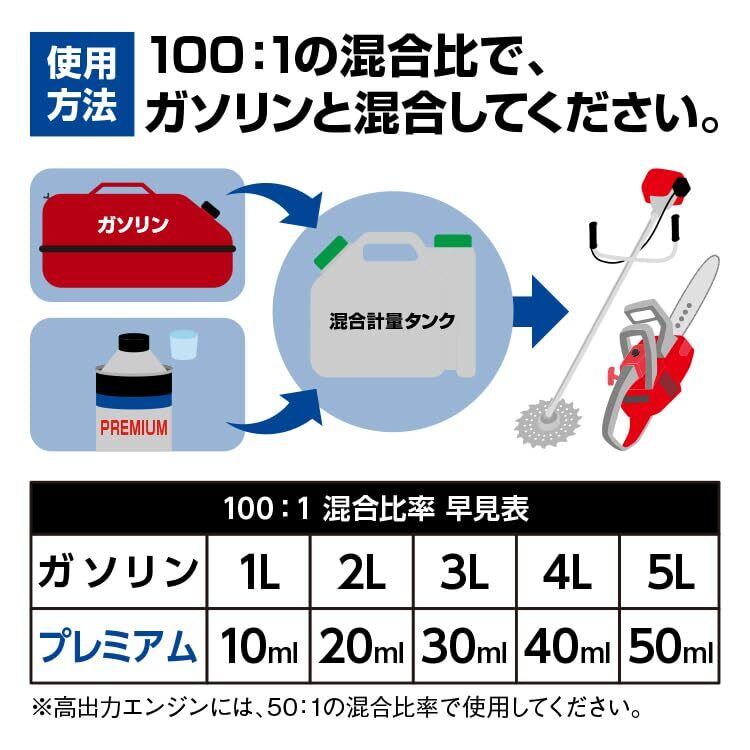【簡単に使える便利さ】使いやすい1Lのボトルサイズで、混合比の計算も容易です。手軽に補充できるため、作業の手間を省き、効率的にエンジンをメンテナンスできます。
