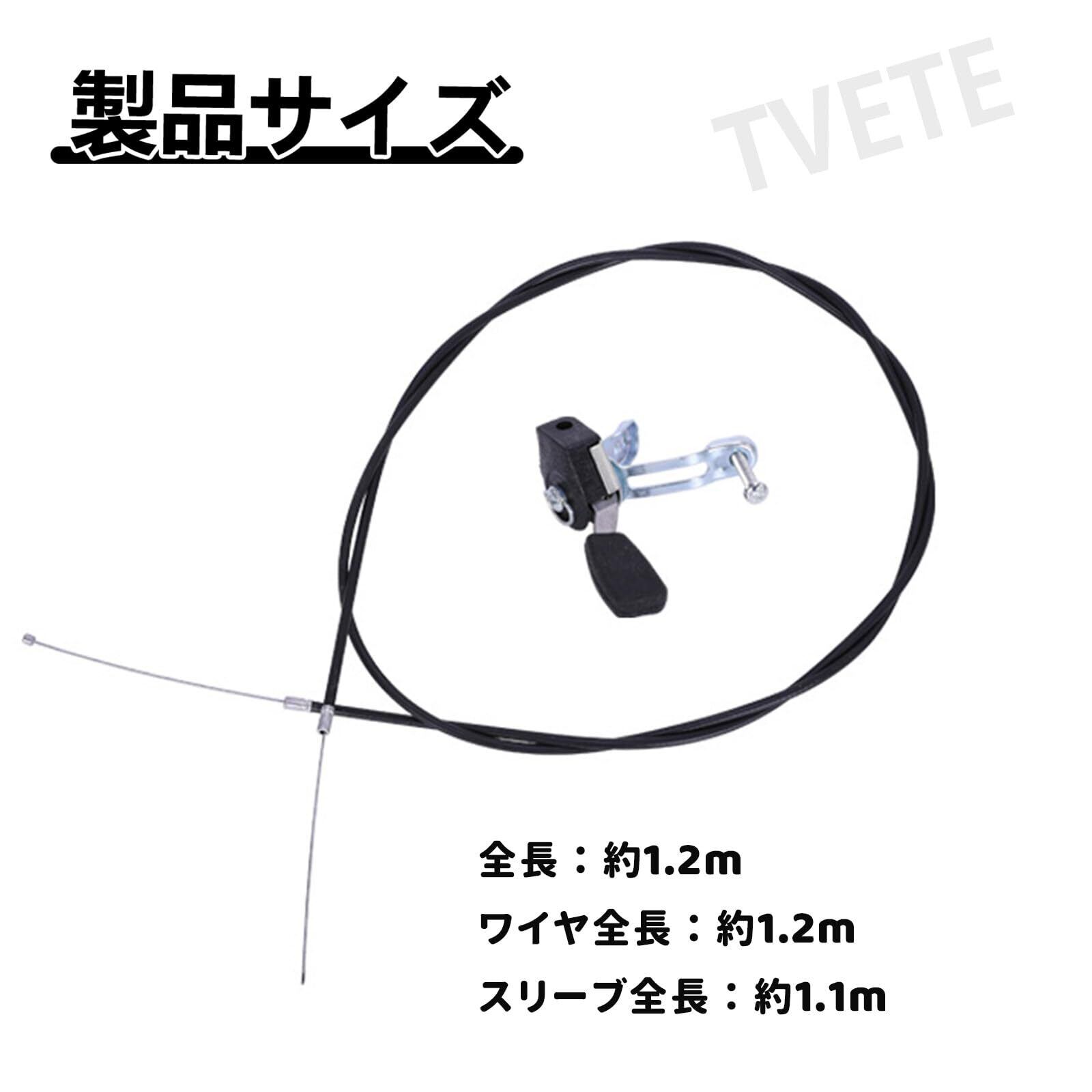 【製品サイズ】セットにはスロットルケーブルとケーブルスイッチが含まれます。ケーブルの長さは約120cm、スイッチハンドルはパイプ径2.5cmに適合します。スロットルハンドルとスロットルケーブルが分離しているので、取り付けが簡単です。