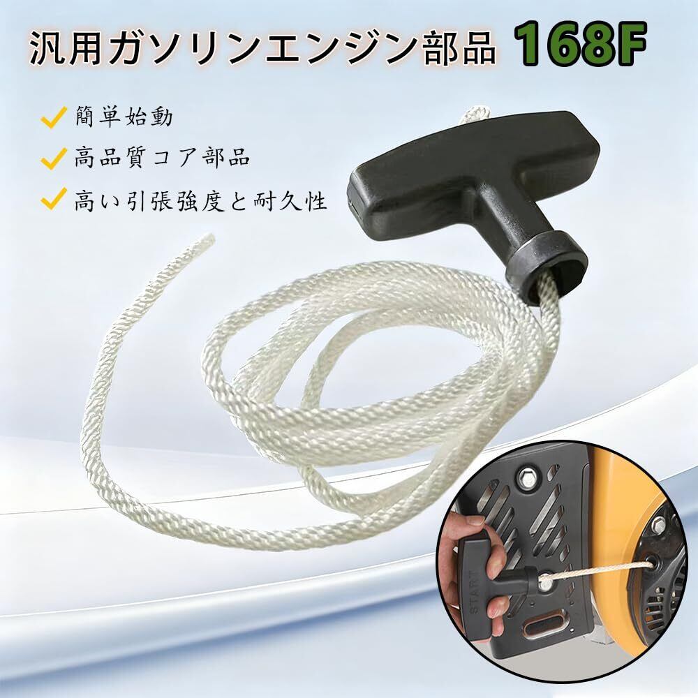 エンジン始動をもっと簡単にする、【新着商品】リコイルスタータープルハンドルです!長さ1.4m、直径5mmのロープは、188Fおよび190Fモデルに適合し、芝刈り機や発電機など幅広い屋外電動工具に対応しています。