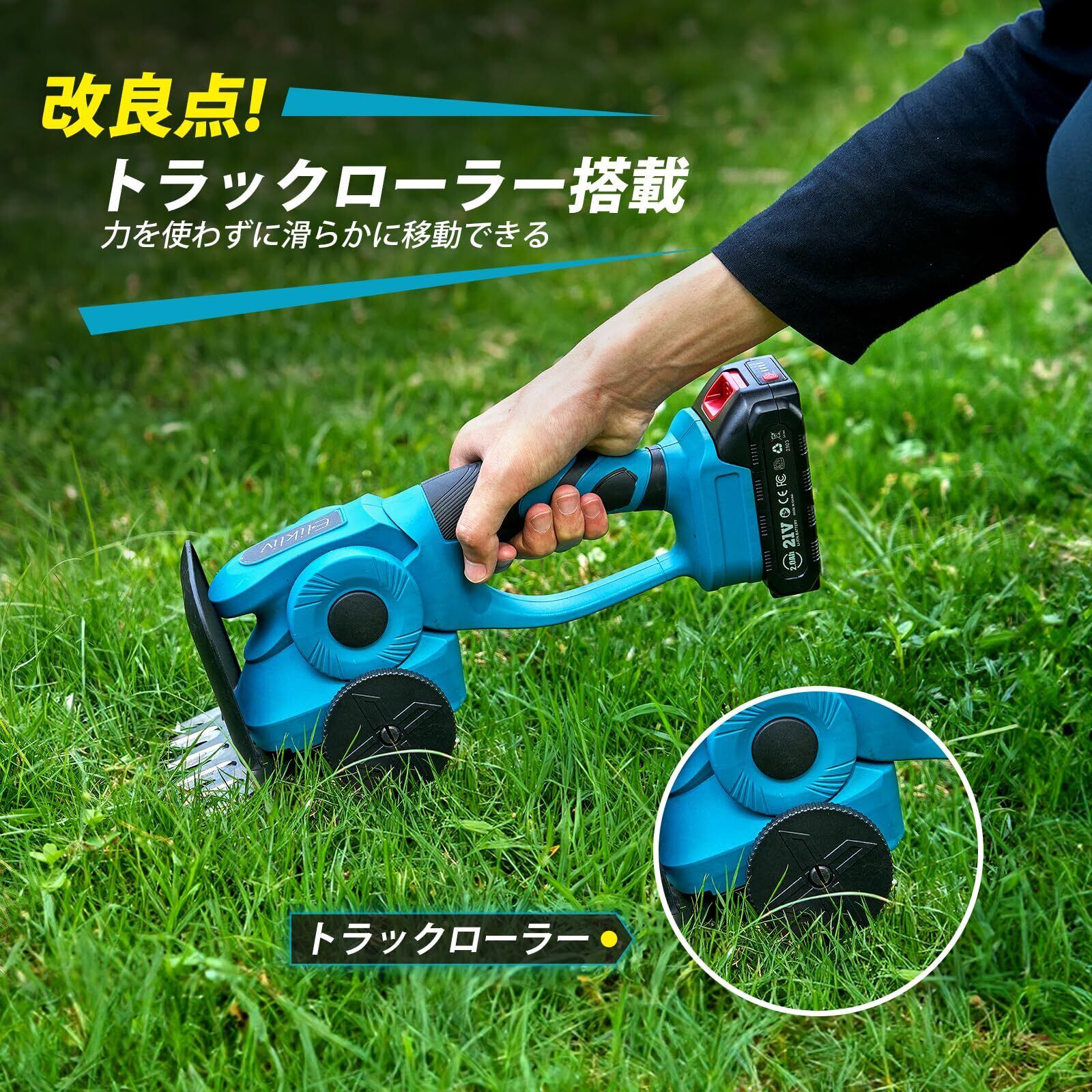 【一台 4 役 & 最新改良の芝生バリカン】️改良点❶Elikliv の充電式ヘッジトリマーには、最大切断長 220mm、最大切断径7mm の生け垣剪定ブレードと最大トリミング幅 130mm の芝生剪定ブレードが装備されています。芝生バリカンと草刈機を自由に切り替えることができ、園芸剪定作業をより便利にすることができます。刃物交換は半工具レス生垣バリカンへチェンジ可能、トリマーブレードを装着すれば、植木の剪定も可能です。️改良点❷この芝刈り機はトラックローラー付きで、操作が大幅に楽になり、力を使わずに滑らかに移動できるため、作業者の体力消耗を減らします。広い芝生で作業する際にも、位置や方向を簡単に調整でき、作業能率を向上させます。️改良点❸プロテクターが搭載されており、跳ね石を防止して安全な作業環境を提供します。