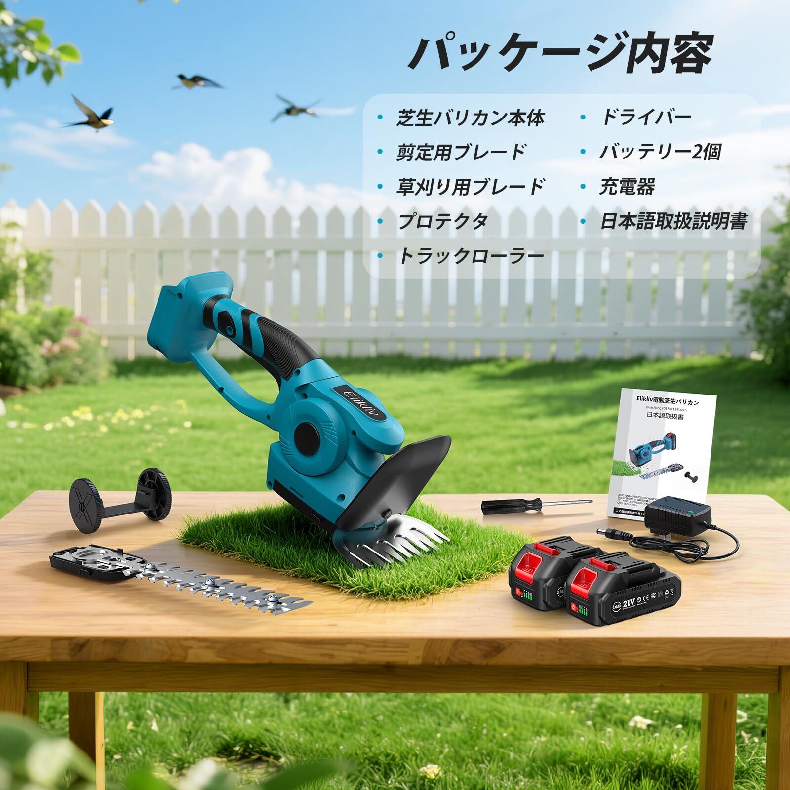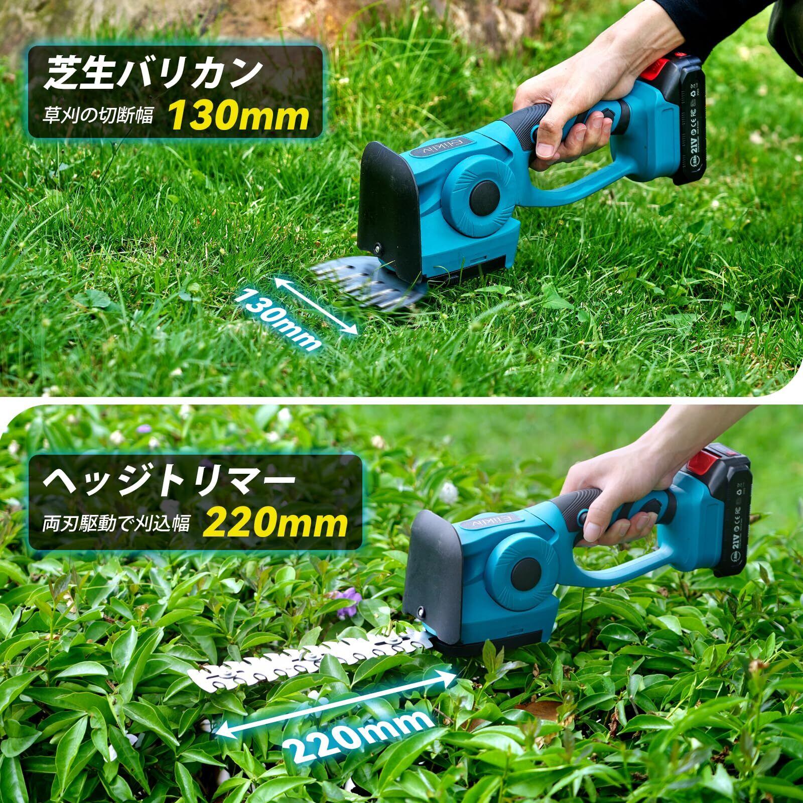 【新春セール】Elikliv 芝刈り機 電動 芝生バリカン 充電式ヘッジトリマー 剪定トリマー コードレス 1台2役 トリマー刈幅220mm 最大切断径7mm バリカン刈幅130mm 両刃駆動 刈込高さ調整15-25mm 二重安全ロック 軽量 生垣 園芸 植木 ガーデンバリカン 大容量バッテリー2個付き | allstore3