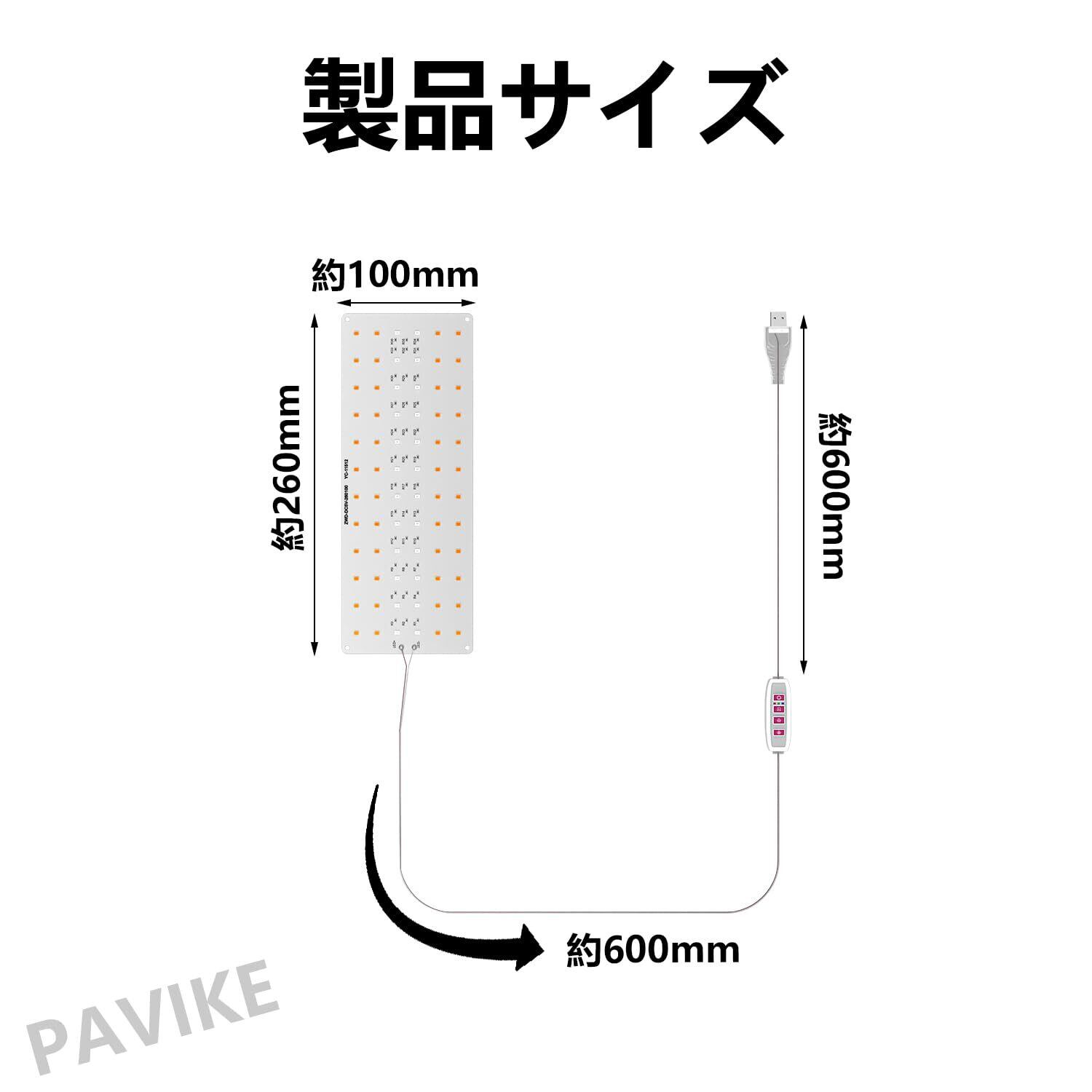 USB ケーブルを PC やモバイルバッテリーに接続し、パネルのスイッチで明るさとタイマーを設定します。 ご注意: