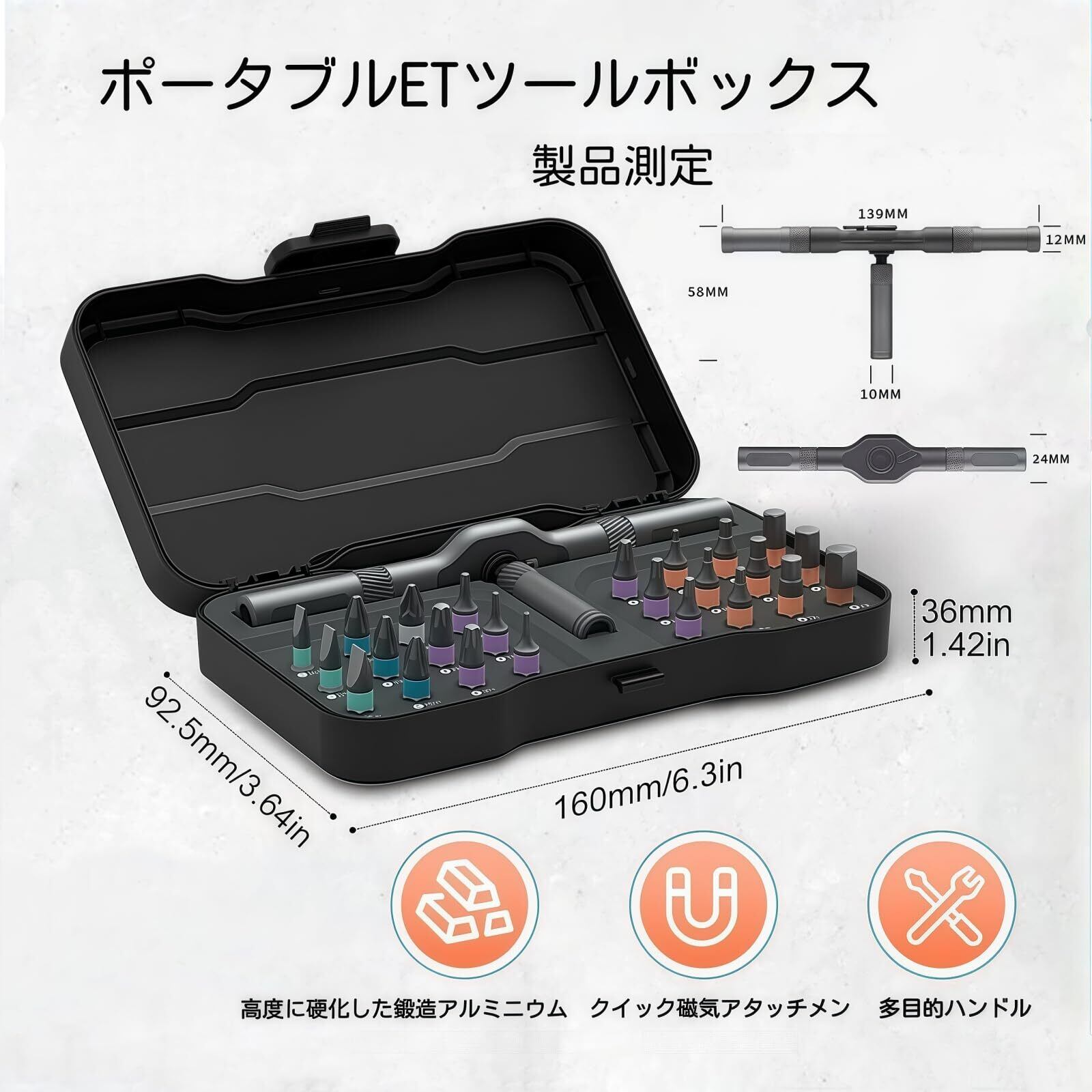 強力磁気ホルダー&収納システム:磁性ビットホルダーが作業中のビット脱落を防止。衝撃に強いPP樹脂製収納ケース付属で、工具の整理整頓と携帯性を両立させました。
