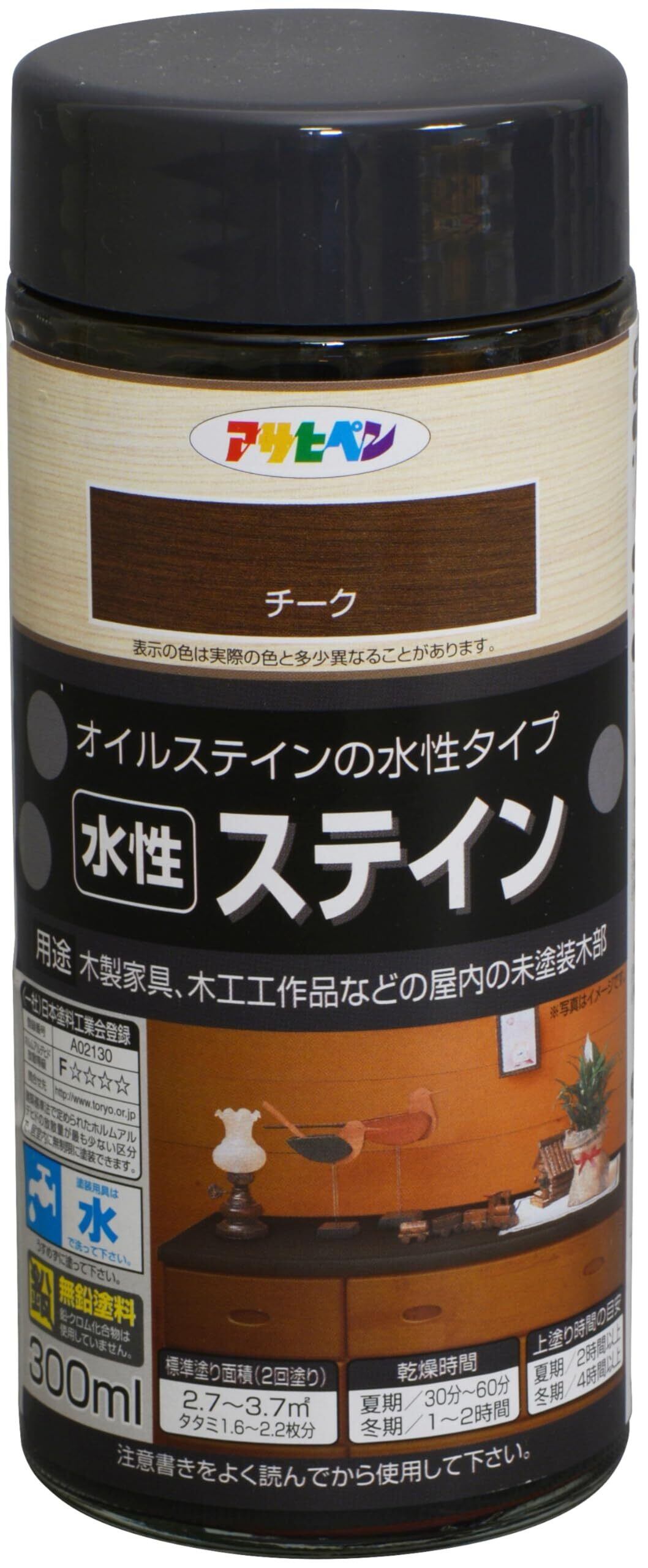アサヒペン 塗料 ペンキ 水性ステイン 300ml チーク 水性 艶消し ステイン仕上げ 上塗り不要 シックハウス対策品 日本製