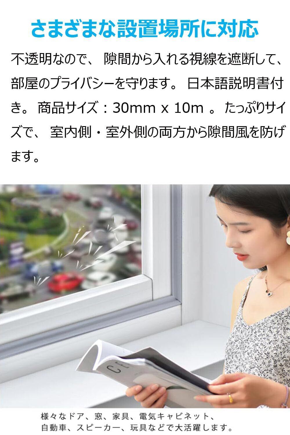 目隠し:不透明なので、隙間から入れる視線を遮断して、部屋のプライバシーを守ります。 日本語説明書付き。商品サイズ:30mm x 10m 。たっぷりサイズで、室内側・室外側の両方から隙間風を防げます。