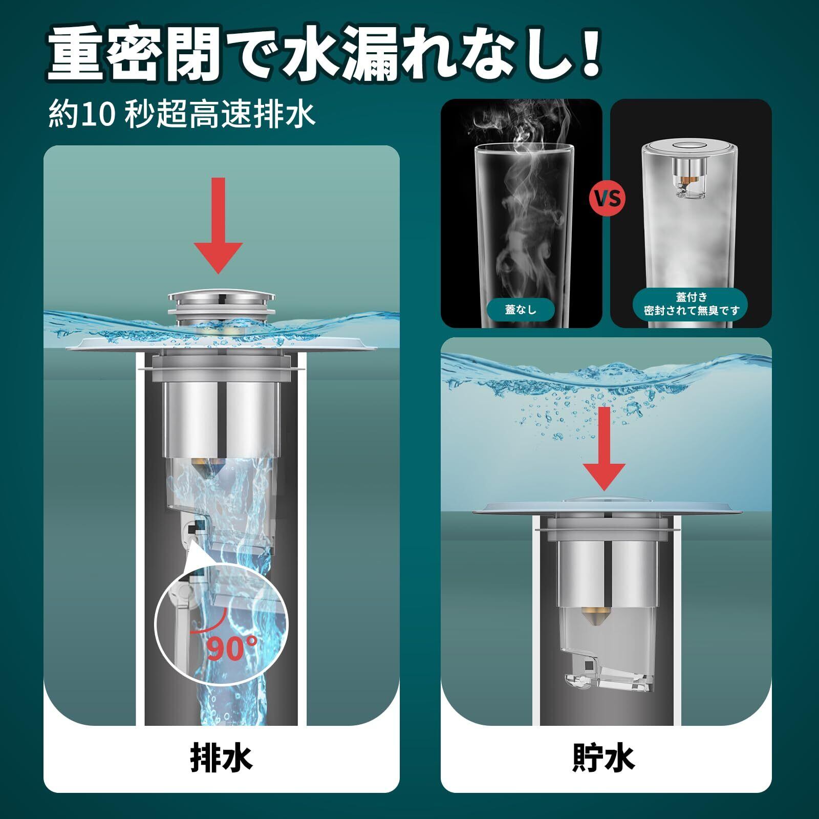 【内蔵フィルター+防臭防虫、二重で清潔を守る】:高密度フィルターが標準装備された洗面所 排水口 ゴミ受けは髪の毛や残りカスなどのゴミを正確に捕集し、配管の閉塞を防ぎます。同時に高性能防臭構造を搭載し、下水道の悪臭が逆流するのをしっかり遮断するだけでなく、ゴキブリなどの害虫の侵入も効果的に防ぎ、バスルームの空気を清潔に保ちます。
