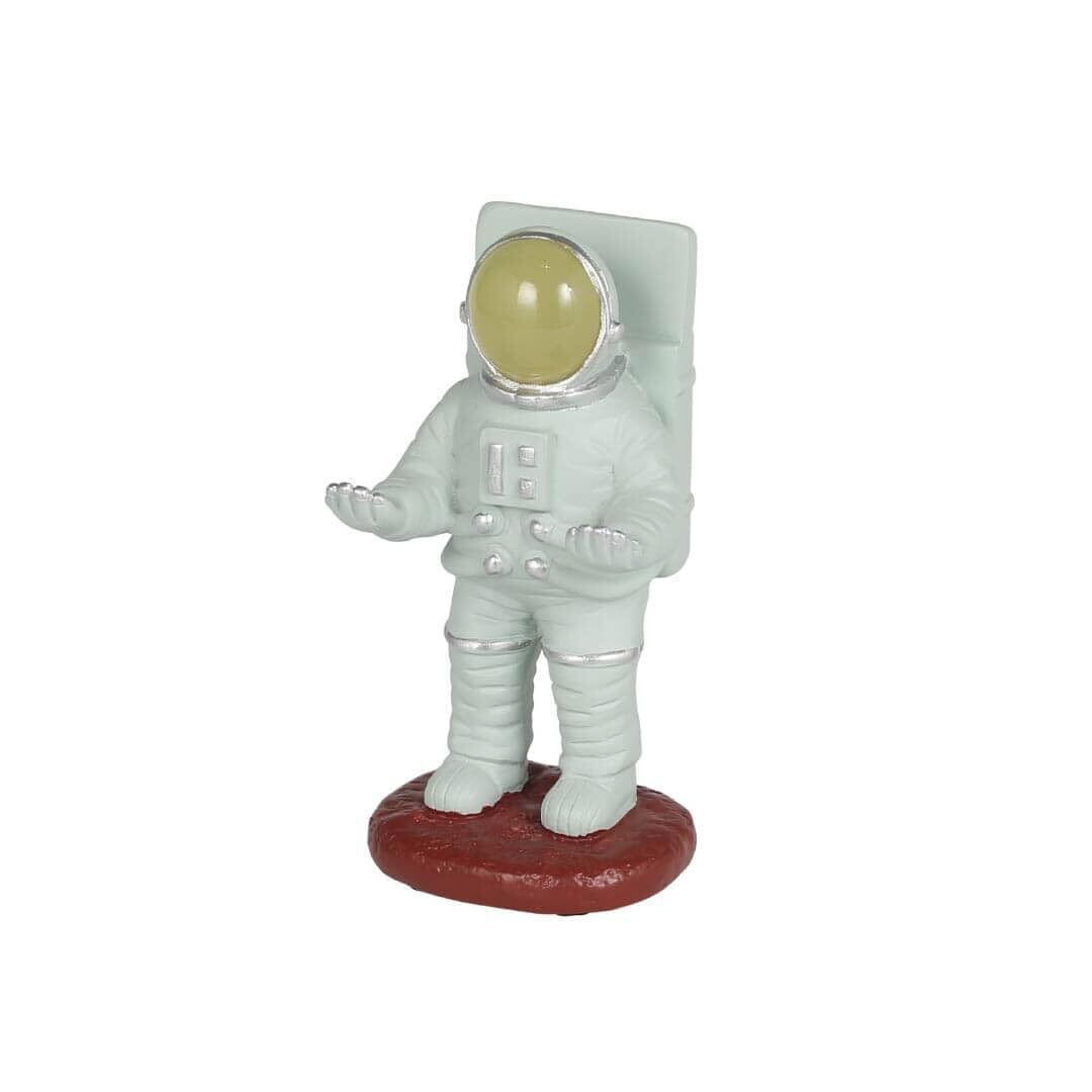 【デザインと素材】宇宙飛行士をモチーフにしたデザインは、遊び心満載でありながら、セージグリーンの色合いが落ち着いた印象を与えます。お部屋のデスクやリビングに置けば、目を引くアクセントとなり、個性的な空間を演出します。