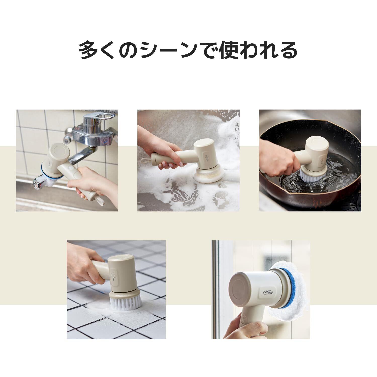 ハピカルシリーズから充電式でコンセントのない場所でもサッと持ち出せて、回転の力で汚れを落とすマルチスクラバー誕生。