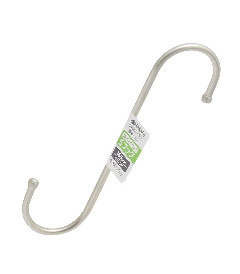 髙儀(Takagi) ステンレス S フック 165mm シルバー 耐荷重:約5kg 材質:18ー8ステンレス さびにくい 小物などの吊り下げ S字 吊り下げ 引っ掛け キッチン 整頓 日本製 高儀 たかぎ TAKAGI