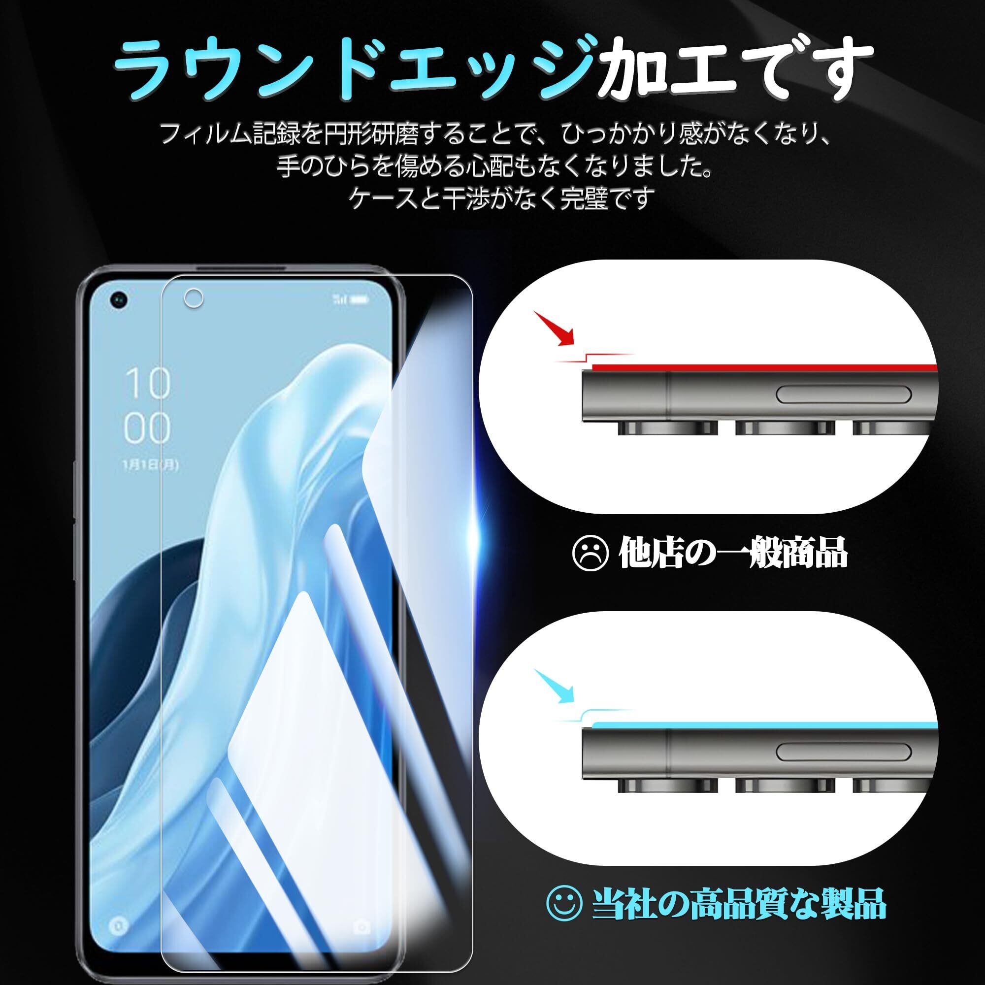 【新春セール】【2+2枚セット】 KPNS 日本素材製 強化ガラス OPPO Reno7 A OPPO Reno9 A 用 ガラスフィルム カメラフィルム カバー 保護フィルム
