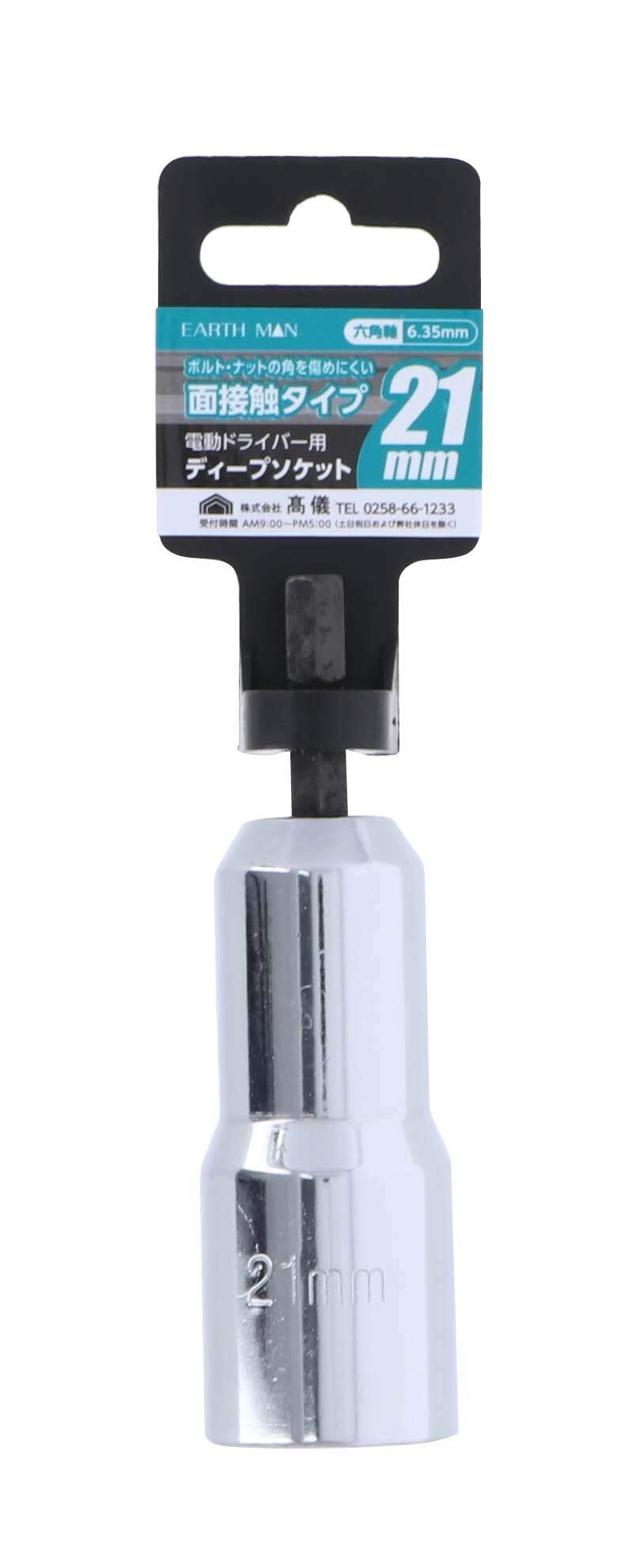 高儀(Takagi) EARTH MAN 六角軸ディープソケット 21mm ハンガー付 ボルト・ナットの角を傷めにくい面接触タイプ