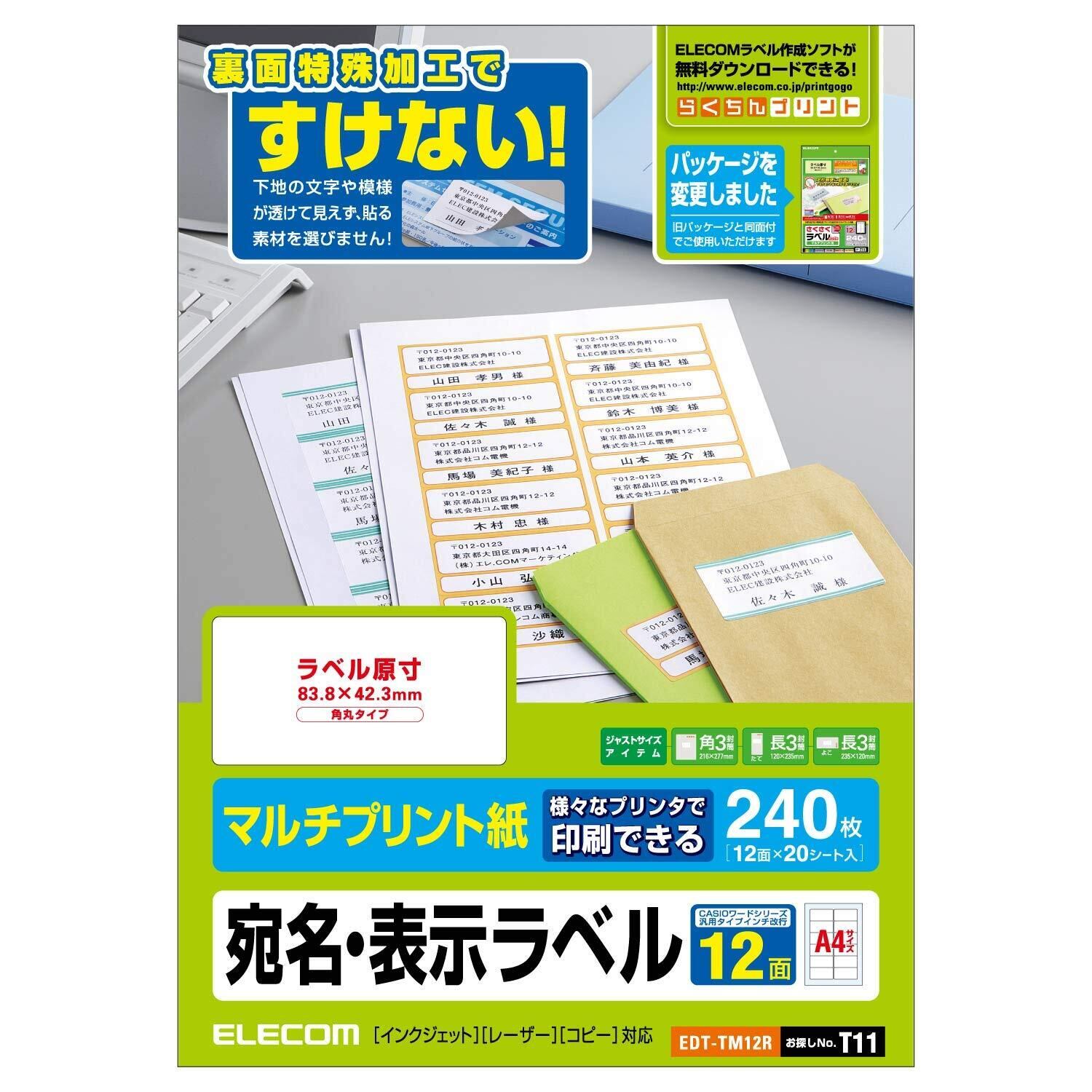 【2022最新】エレコム ラベルシール 240枚分 A4 12面×20シート 角丸タイプ EDT-TM12R