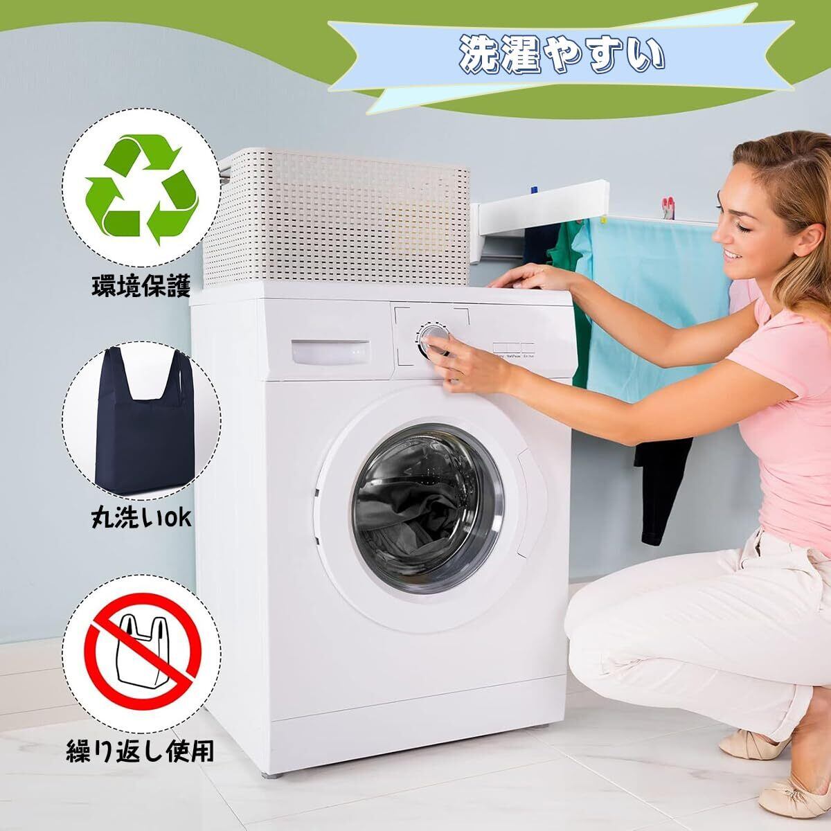 「洗えるエコバッグで快適エコライフ!」水洗いOKのエコバッグで清潔を保ちながら環境保護に貢献します。汚れてもサッと洗えて繰り返し使えるから、プラスチックごみ削減に。コンパクトに折り畳んで持ち運びも便利です。毎日使うものだから、衛生的で地球に優しい選択を。