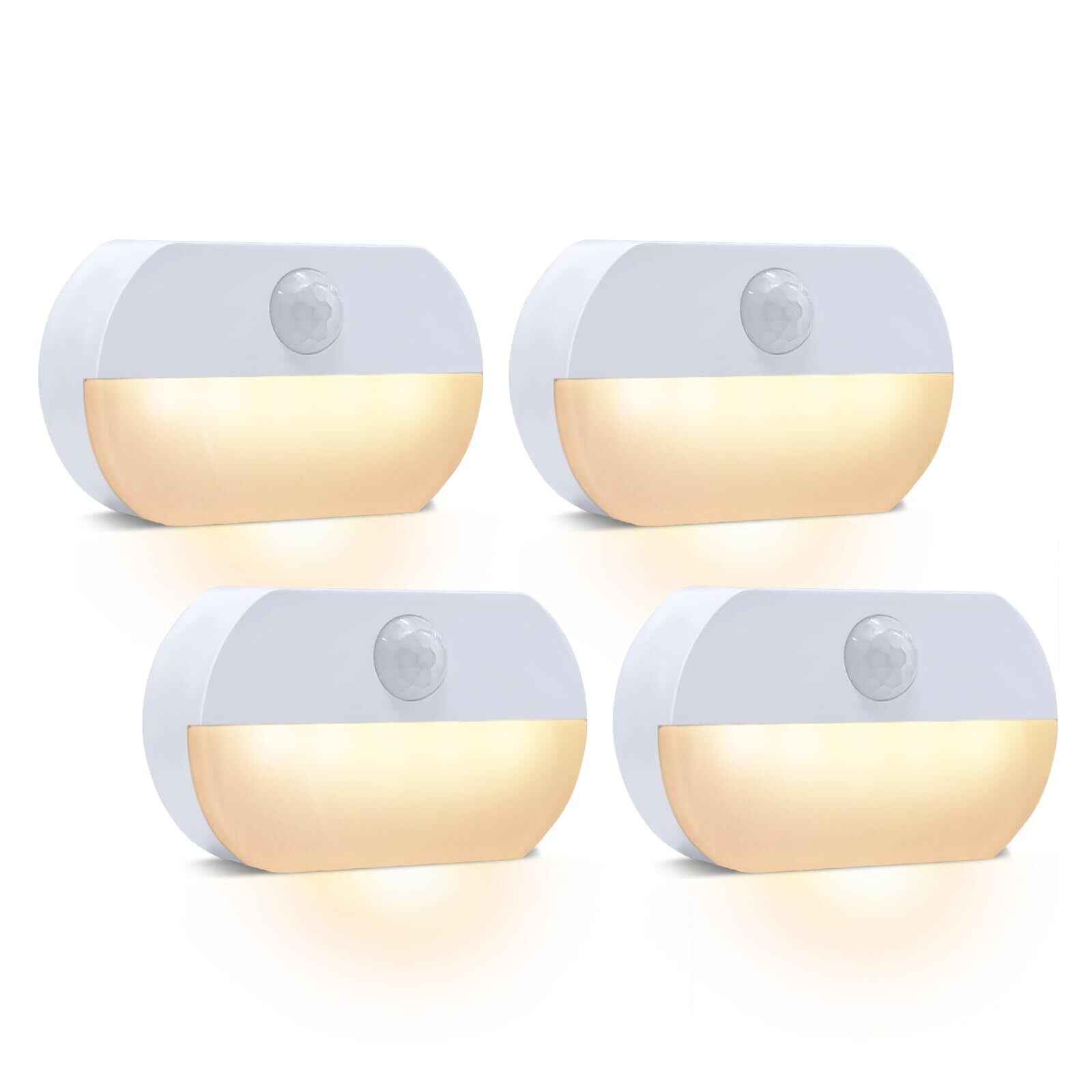 【新春セール】Led センサーライト 電池式 暖色 4個 足元灯 フットライト 人感センサー 配線不要 自動点灯 消灯 階段 トイレ 廊下 冷蔵庫照明 玄関 クローゼット 室内ルーム 小さい 両面テープ付き 電池別売り カバーあり