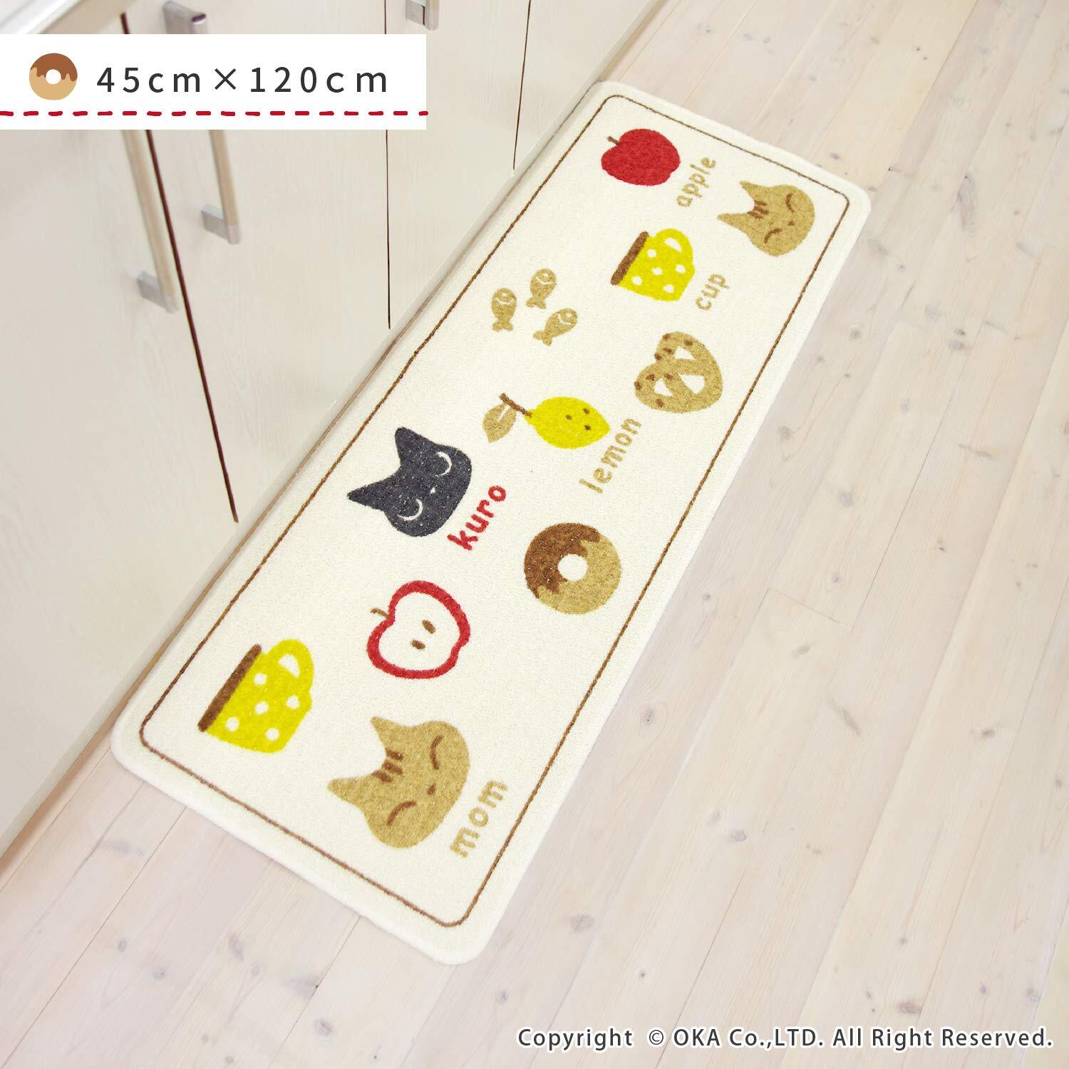 オカ(OKA) クロネコキッチンマット 約45cm×120cm (日本製) ブラウン 4548622624199