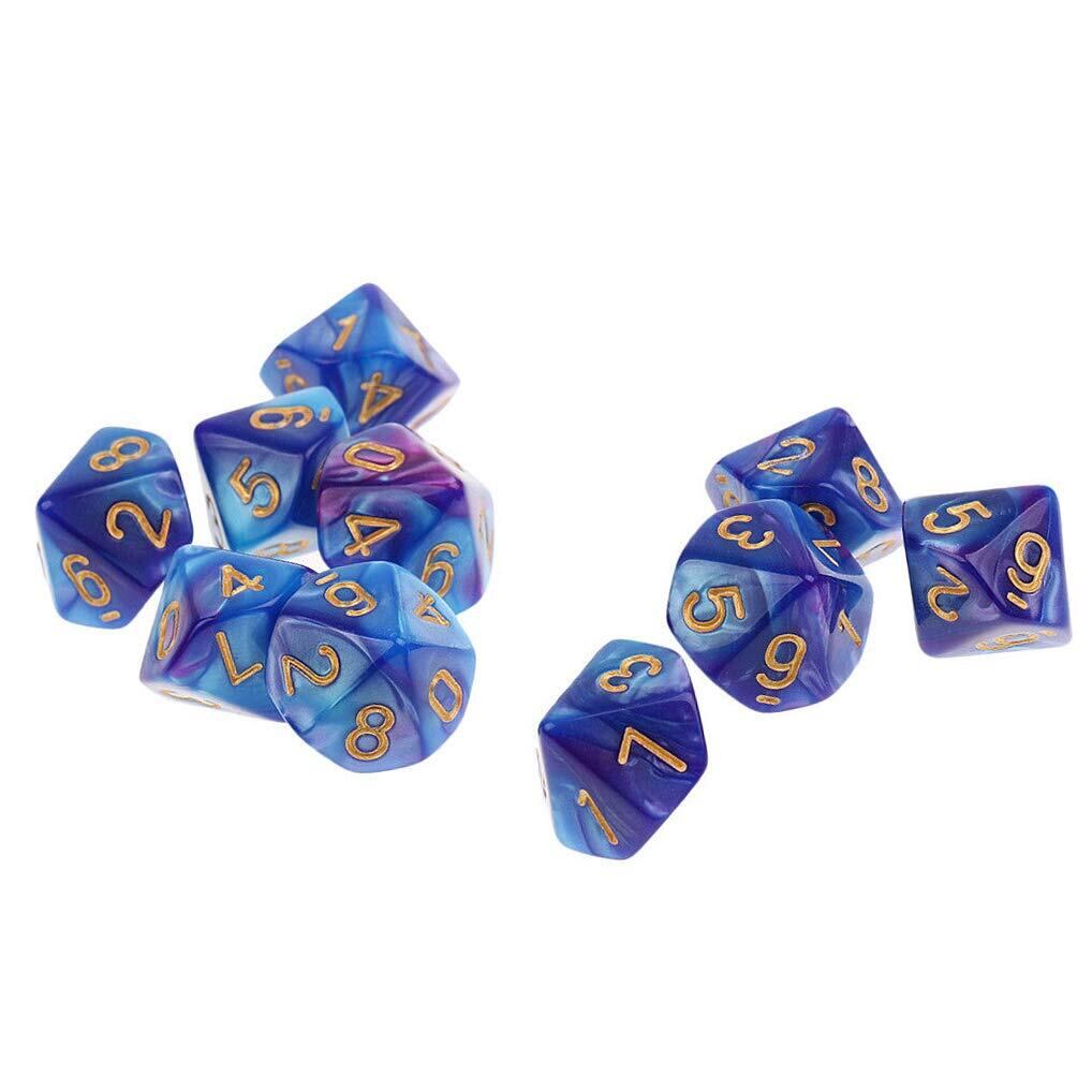 Yourandoll 10個 多面体ダイス D10サイコロ 10面 D10 ダイス Dungeons and Dragons 、DND、 TRPG、 MTGなどテーブルゲーム用 (ブルー パープル)
