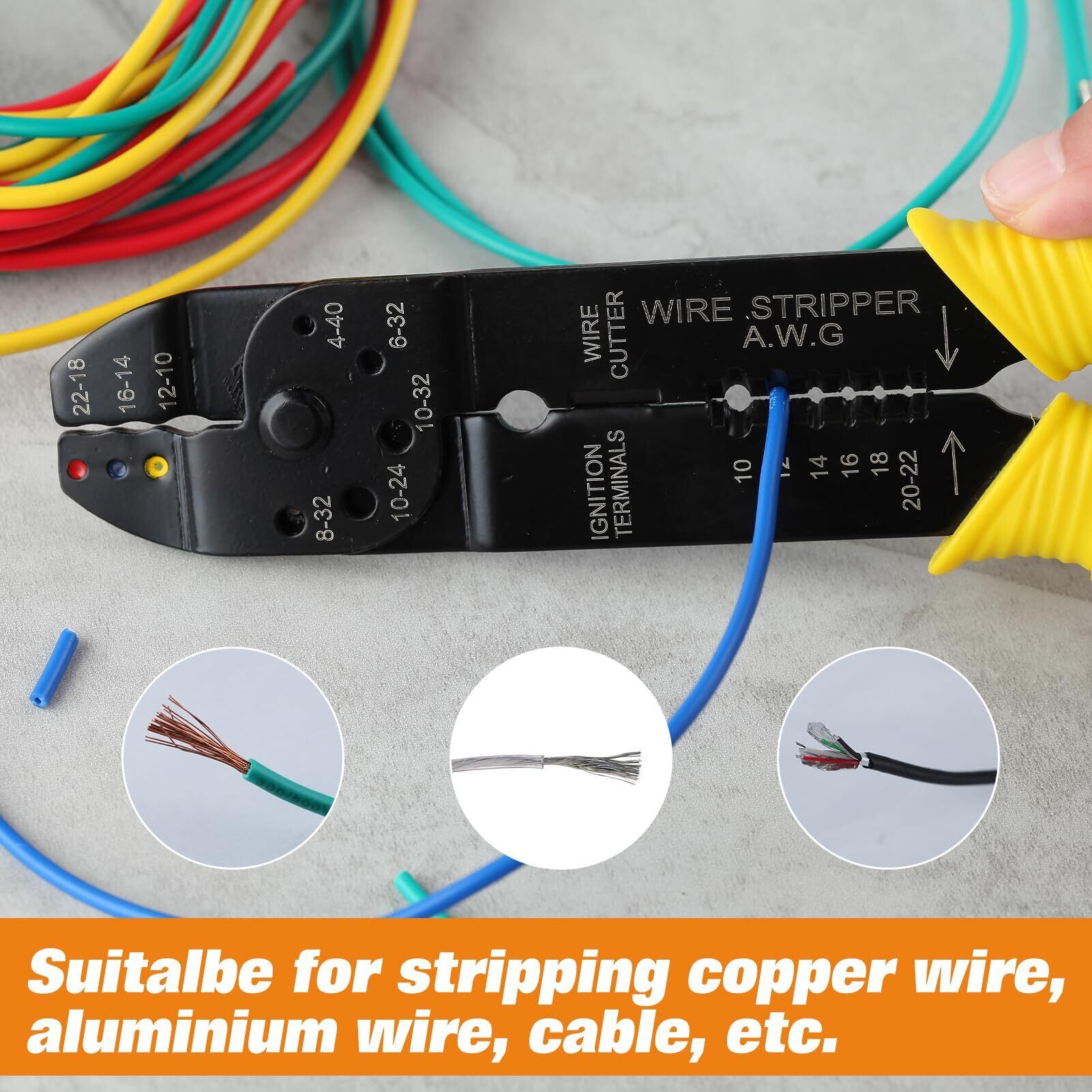 多機能:10-22 AWG用ワイヤストリッピング、10-22 AWG絶縁および非絶縁端子/コネクタ用ワイヤ圧着、10-2 /10-32/8-32/6-32/4-40 AWG用ネジせん断、銅切断、アルミニウムケーブルワイヤ、マルチストランスシーワイヤー。電気技師、エンジニア、diy愛好家、家庭での使用に最適です。耐久性
