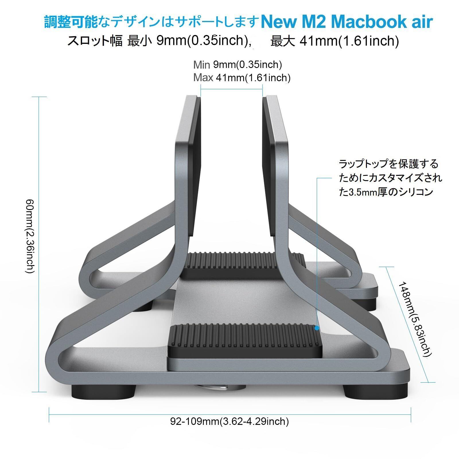 安定感良い:9-41mmの幅を調整できるパソコンスタンド 縦置き、 ほとんどすベてのラップトップに適しています。スロットを少し締めると、ラップトップがより垂直になり、安定します。