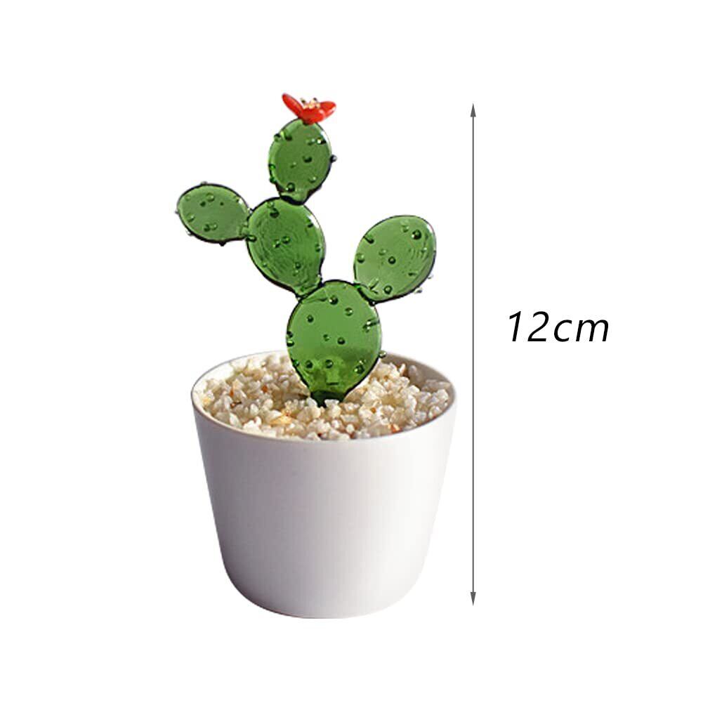 【新春セール】るり製 工芸品 装飾 飾り物 オブジェ 小物 鉢植え インテリア 置物 人工植物 ミニ植木鉢 オーナメント 手作り 玄関 机 テーブル ガラスアート (葉型のサボテン)