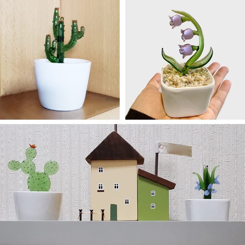 るり製 工芸品 装飾 飾り物 オブジェ 小物 鉢植え インテリア 置物 人工植物 ミニ植木鉢 オーナメント 手作り 玄関 机 テーブル ガラスアート (葉型のサボテン)
