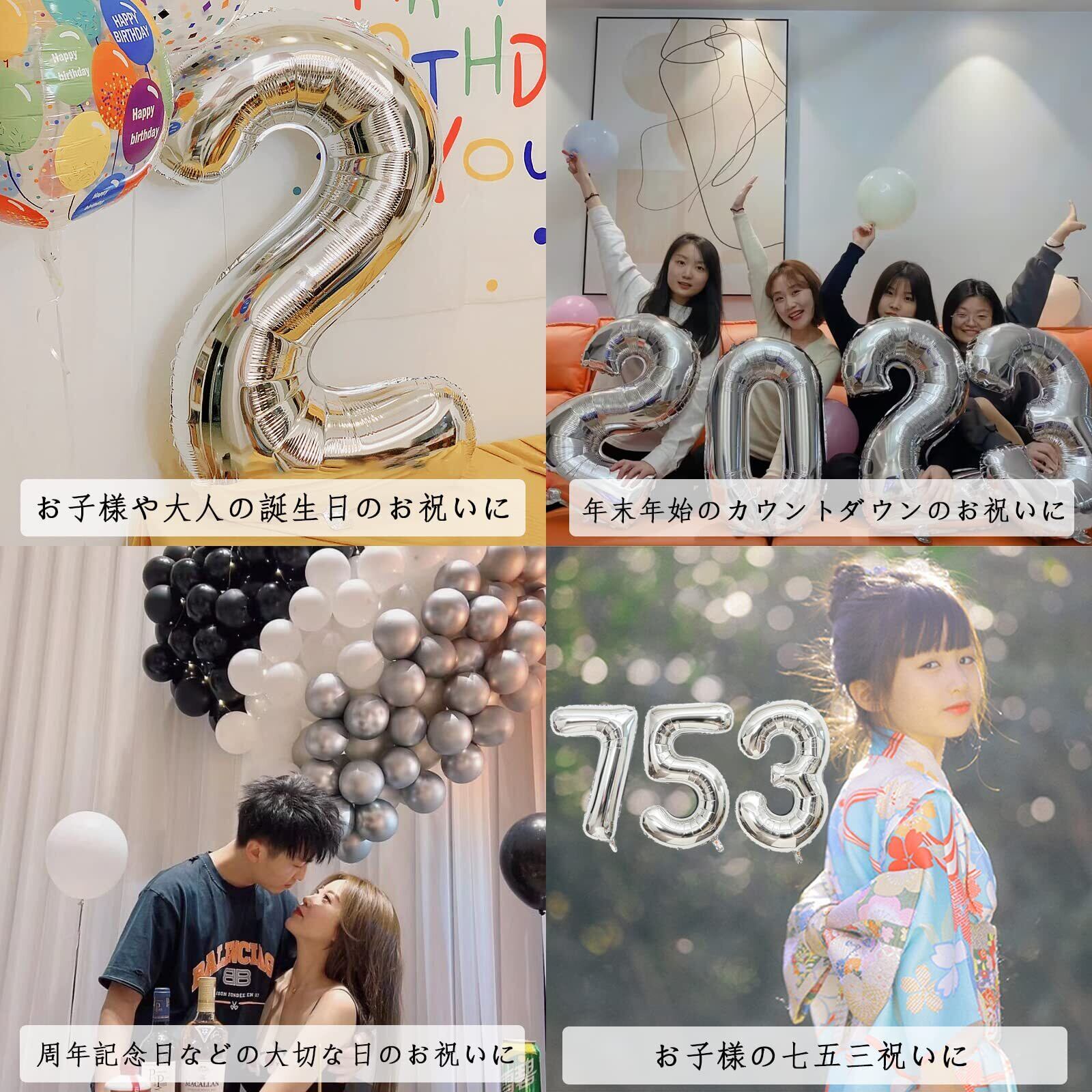【セット内容】:数字バルーン*1(ストロー付き)。カラー:シルバー。【素材】:アルミ素材。️