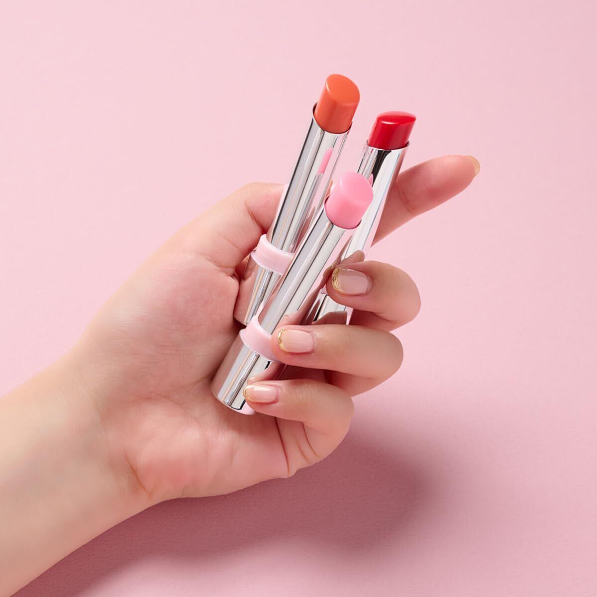 内側からふわっと色づくようなシアーな発色と、みずみずしいツヤ