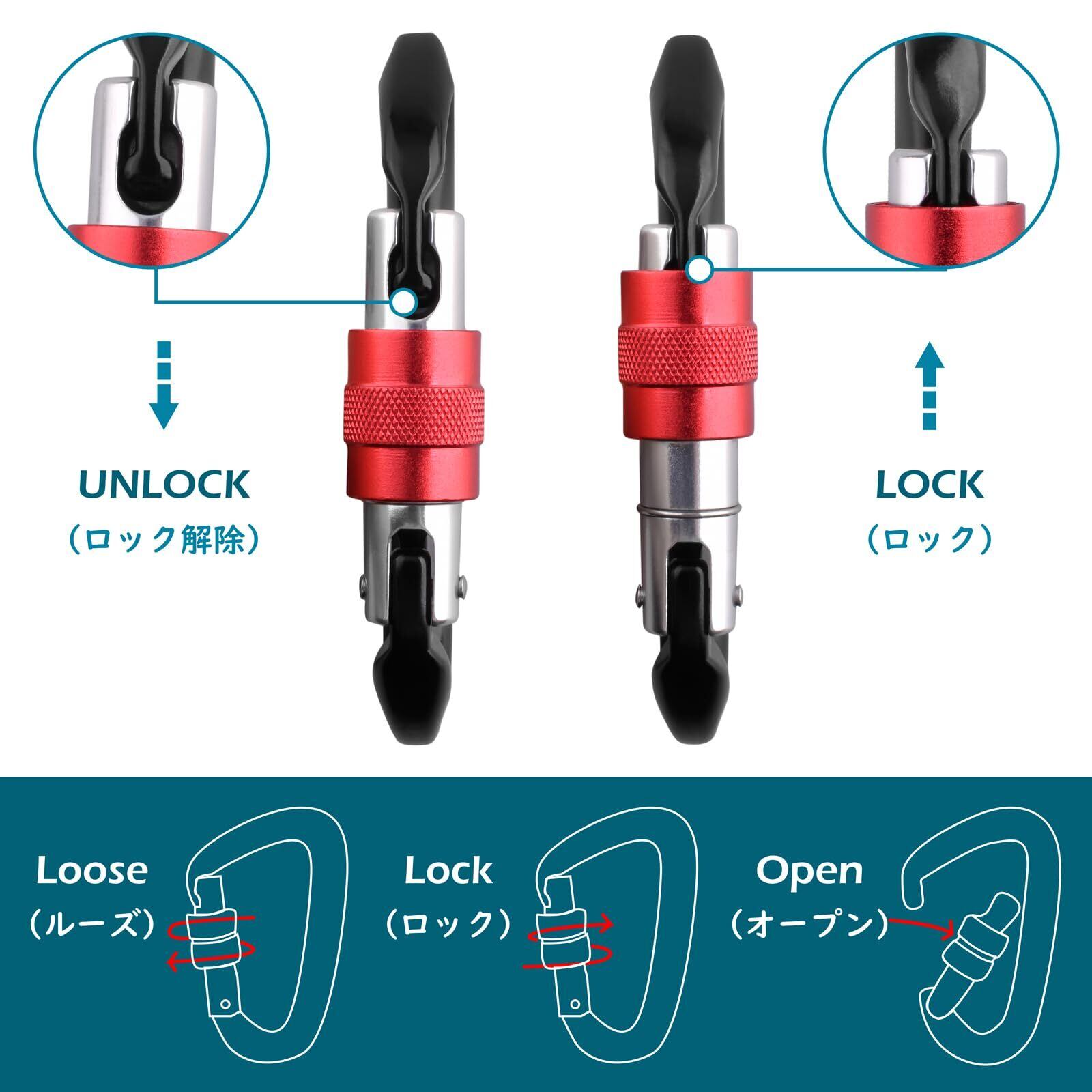 【セルフロック機能】安全性を重視したセルフロック機能を搭載しています。これにより、カラビナが自動的にロックされ、装着が容易になる一方で、不意の脱落を防ぐことができます。あなたの大切なギアをしっかりと守ります。