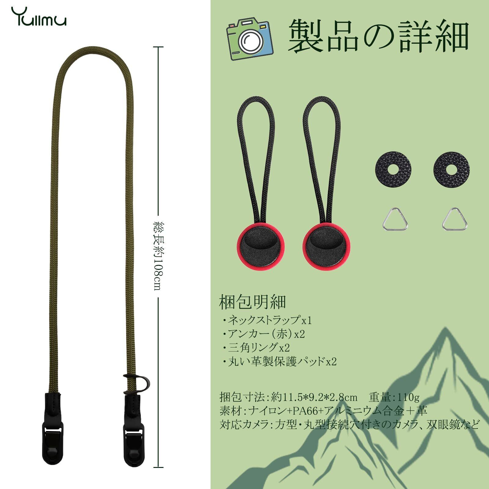 【人気商品】[Yullmu] カメラストラップ カメラネックストラップ アンカー設計 三角リング付き 3層構造 一眼レフカメラ クライミングロープ 緑