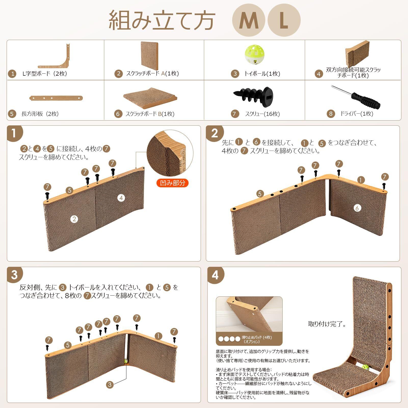 革新的なデザイン:家猫用の爪研ぎ段ボールはL字型のデザイン。壁やソファに立てかけて、家具を保護するためにお使いください。L字型にすることで、猫がさまざまな姿勢でひっかきできるよう、ひっかき面積を広くしています。