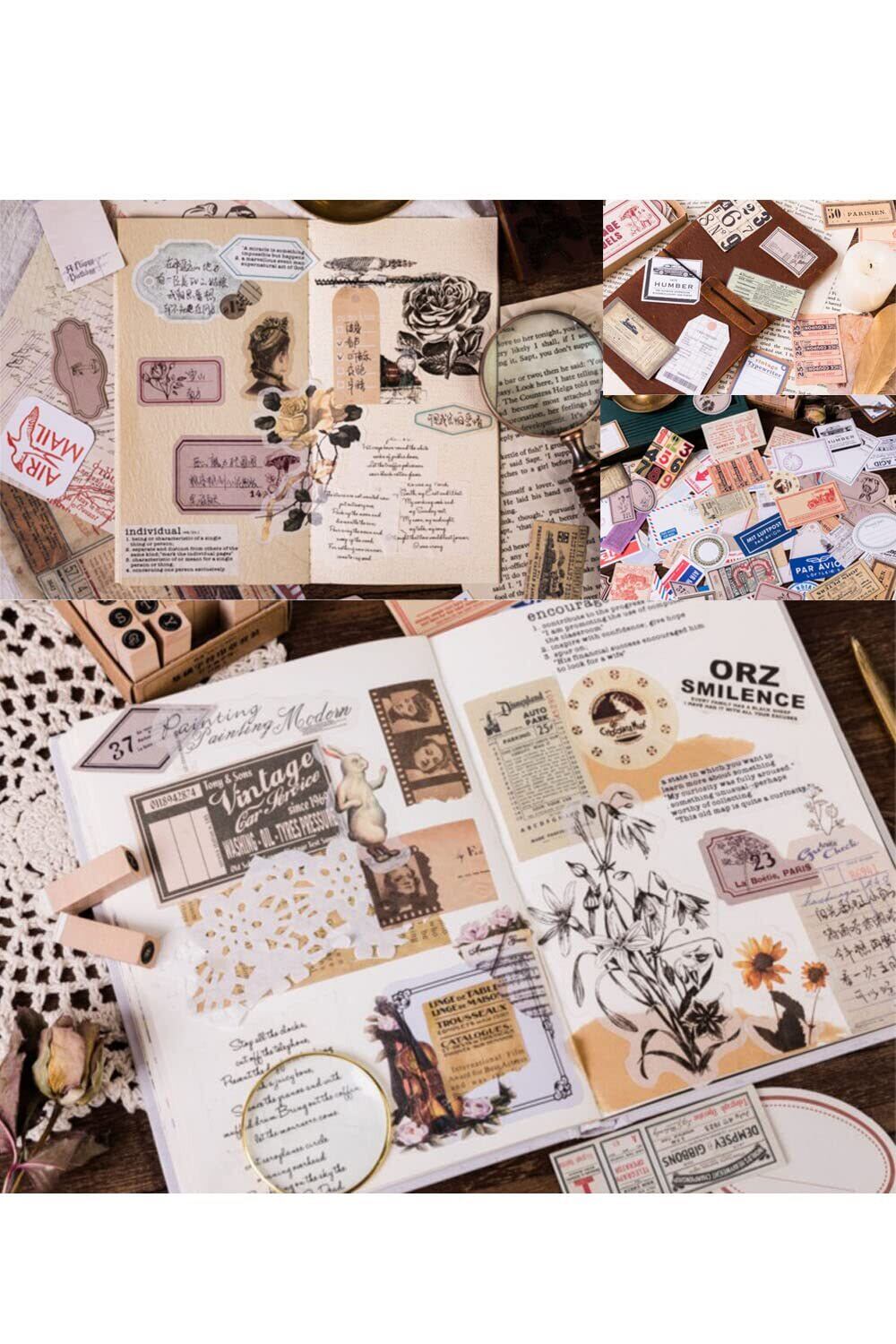 YINKE シール ステッカー フレークシール コラージュ 素材 アンティーク レトロ ミニメモ ジャンクジャーナル コラージュ 手帳ノート 手紙 (60枚)