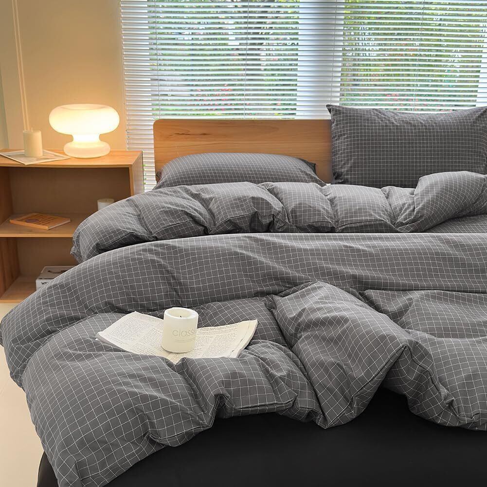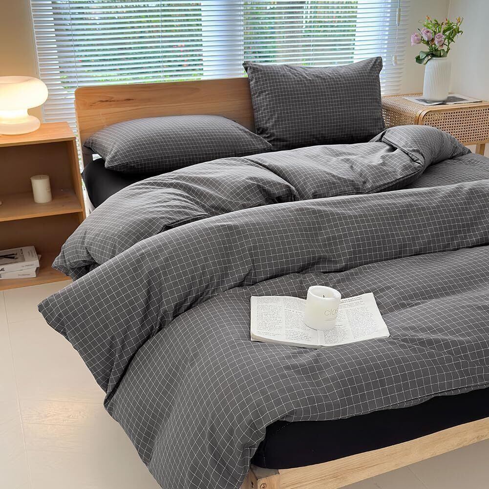 NSNLGSGC 掛け布団カバー 掛ふとんカバー シングル オールシーズン 単品売り 掛けふとんカバー ふとんカバー ダークグレー チェック 柄 150×210cm シーツ 洗える おしゃれ 北欧 無地 かわいい フレンチリネン 抗菌 防臭…