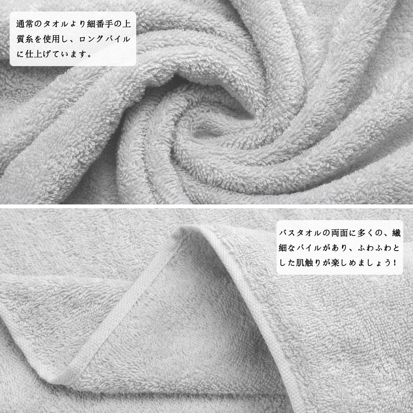 【高品質・耐久性】厳選された100%上質綿の素材で、優しく柔らかい肌触り、優れた通気性、天然成分による高い抗菌・抗臭性、安全性。蛍光剤、有害な染料、発ガン性のある物質など一切含まれていません。タオルは厳しい審査をクリアしておりますので、赤ちゃんやお子様も安心して使用できます。染色堅牢度は4級に達し、色移りがなく、何回洗濯しても変形しない、超強い長持ちします。折れにくい強靭な長い糸に精製織法を採用して糸の靭性が強くて使用寿命は普通のタオルの4倍以上です。