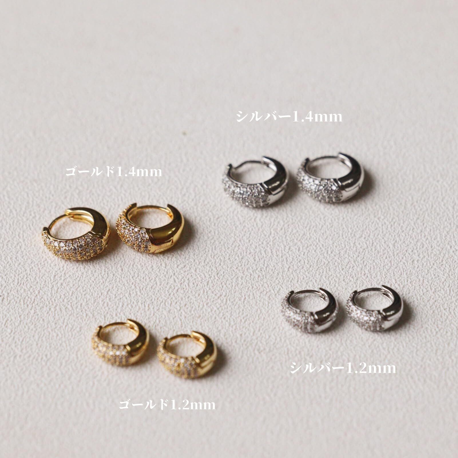 サイズ:1.2cm(ポスト幅:約0.6cm)、1.4cm(ポスト幅:約0.7cm);素材:真鍮、4Aキュービックジルコニア