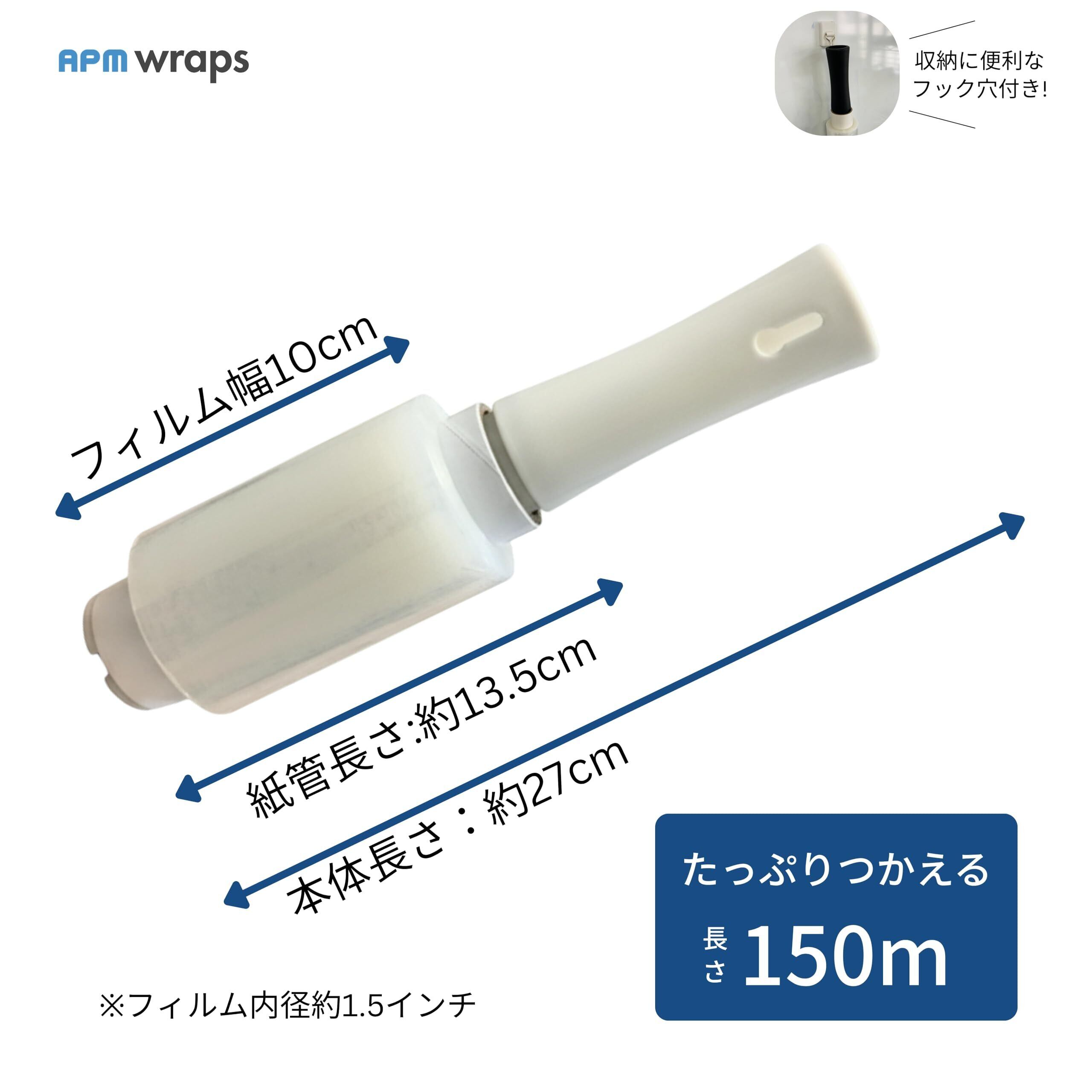 APMジャパン 梱包用ラップ ホルダー+フィルム8個セット 幅10cm×150m巻 15μ らくらくハンディラップ ミニ ストレッチフィルム 20μ相当強化フィルム 引出し左右両方向対応 【箱売り】