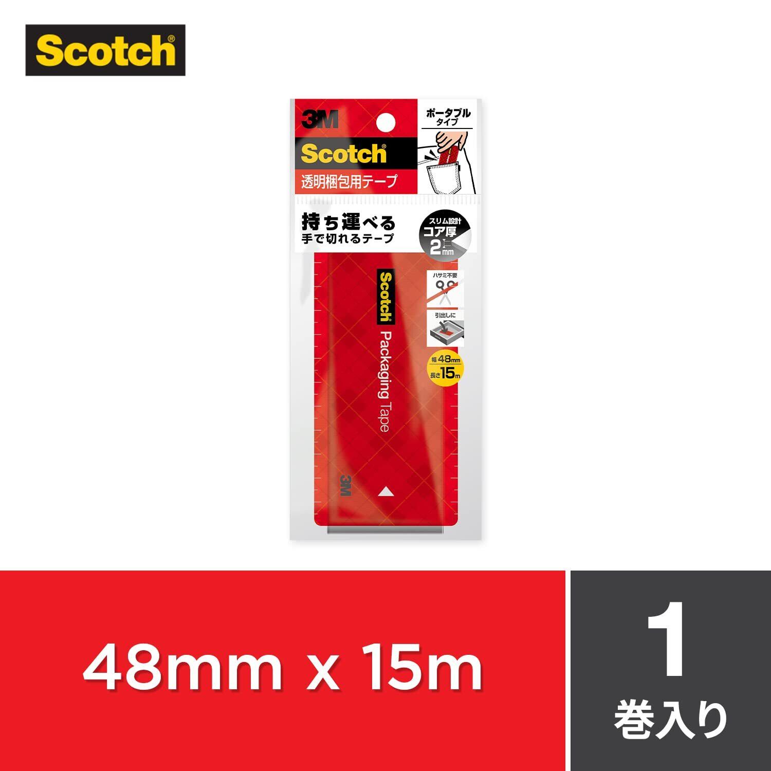 【手で切れる】 3M スコッチ ガムテープ ポケットサイズ 梱包用 手でまっすぐ切れて音が静か ポータブル 15m 3852FLT-15-RD