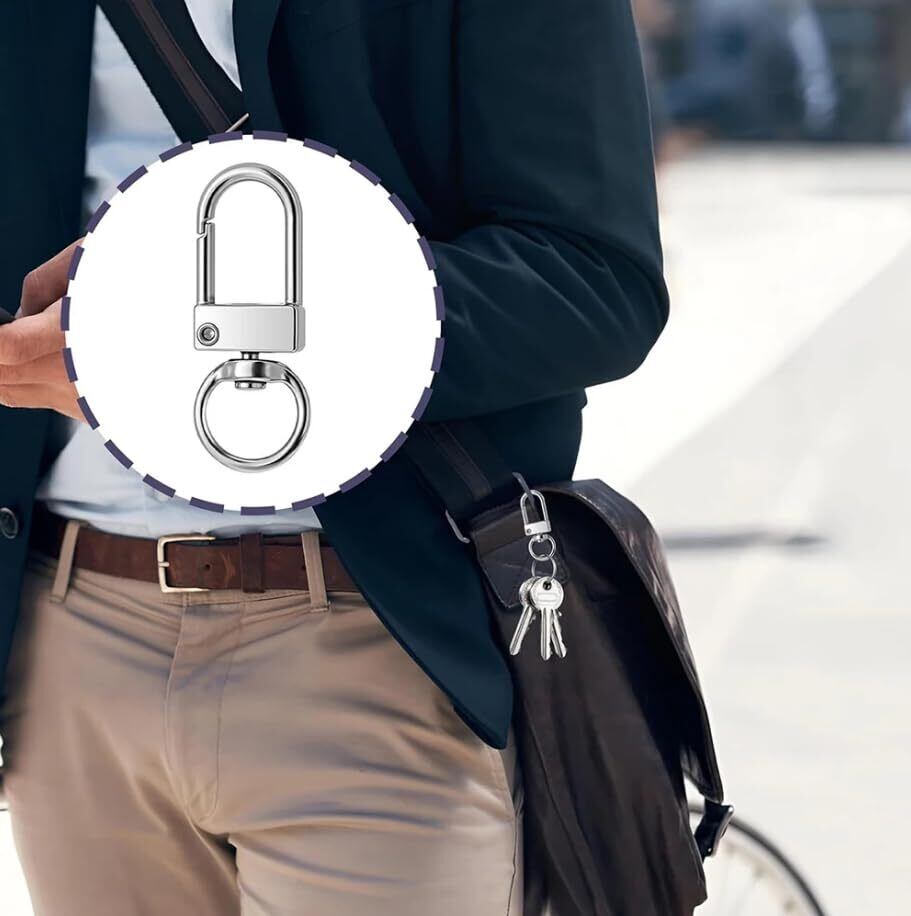 **360度回転フックとワンタッチ設計** 回転カン付きで、角度を気にせずスムーズに着脱。ねじれ防止でアクセサリーやキーホルダーを快適に使用できます。