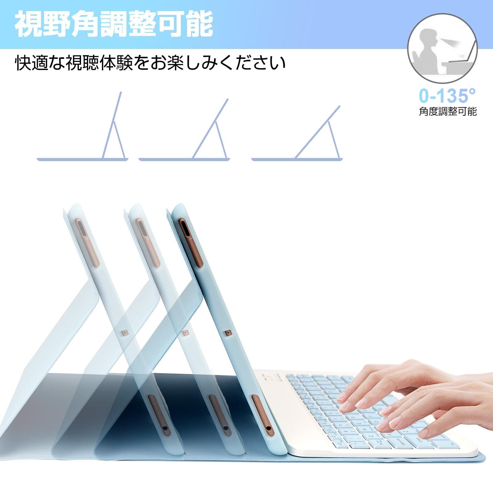 が維持され、エネルギー消費が削減され、デバイスの寿命が延びます。 [角度調整可能]: この洗練されたスタイリッシュなデザインの小型キーボード ケースは、iPad を 1 秒以内にノートパソコンに変えることができます。タブレットをさまざまな視野角から横向きモードに変更して、最も快適な視聴位置を提供できます。仕事、書き込み、ビデオの視聴に最適です。