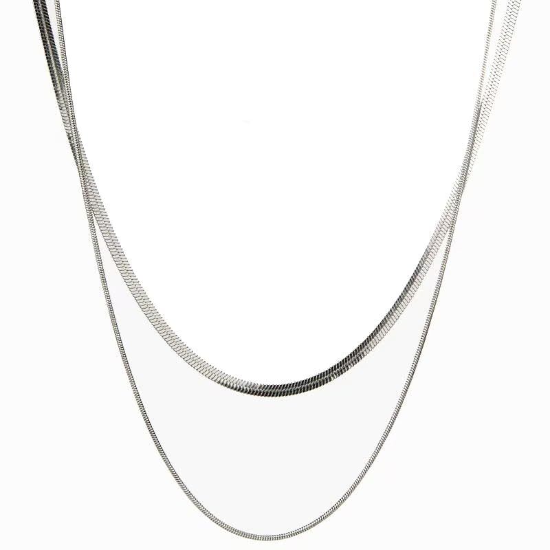 [ZHEJIA] スネークチェーン ステンレス 二重 ネックレス 普段使い 調節可能 チタン鋼の材質は色落ちしない 金属アレルギー対応 細い 極細 繊細 鎖 細め シルバーチェーン 錆びない カジュアル シンプル 対応 アクセサリー メンズ/レディース用 プレゼント 長さ 短鎖40 CM長鎖49 CM